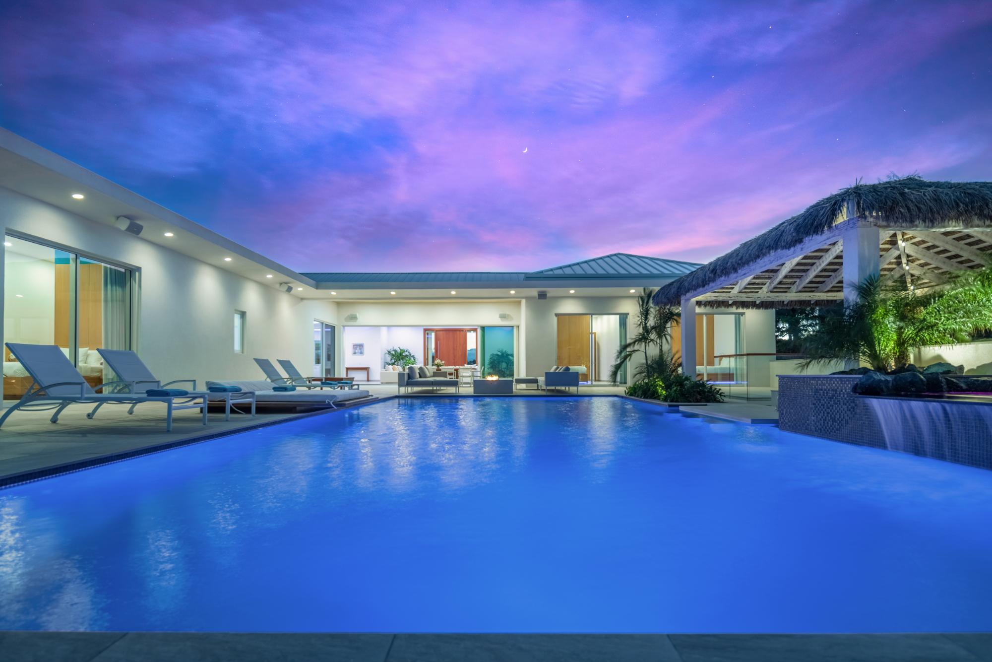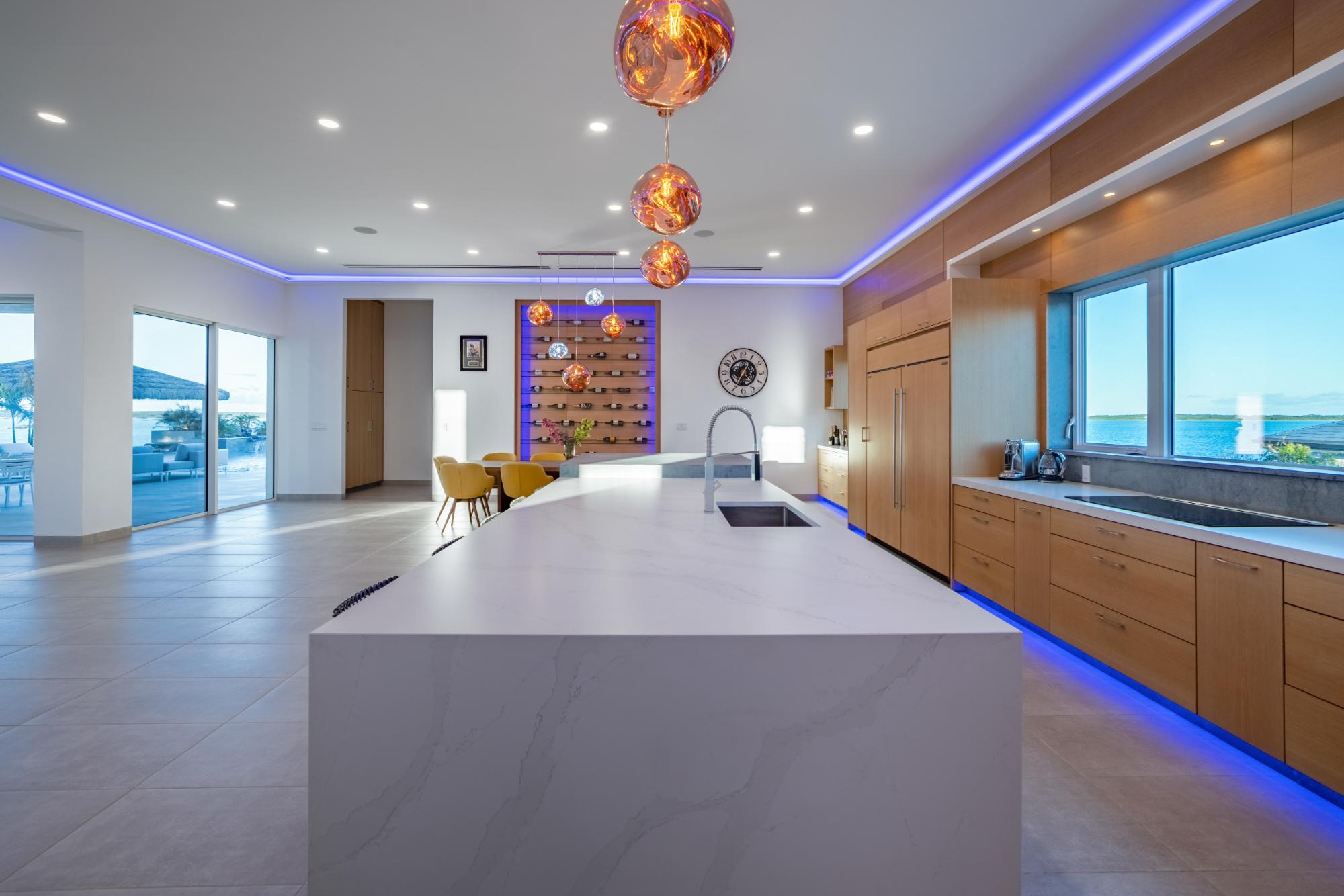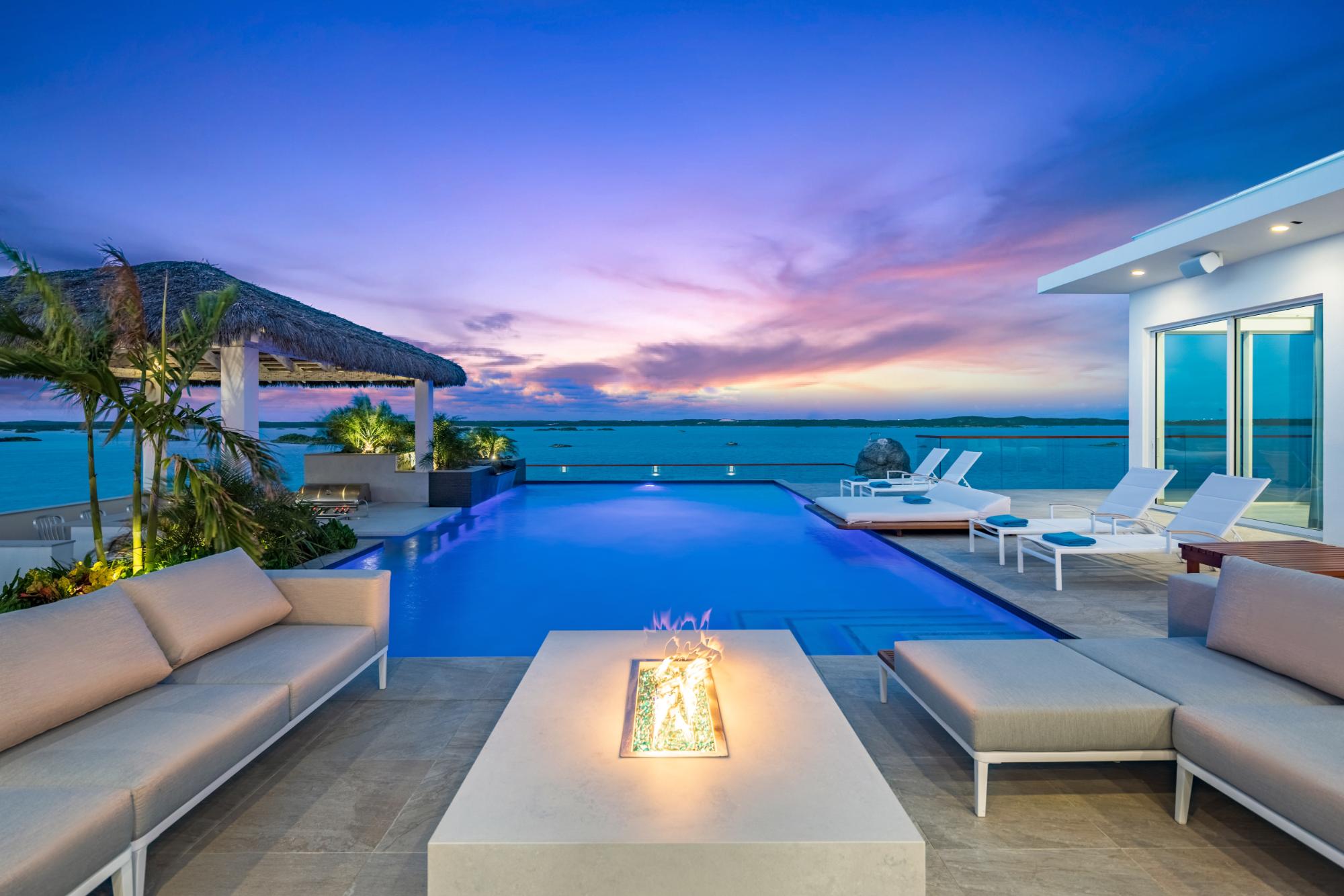 | Description | Experience modern luxury and unparalleled privacy at Ocean Breeze Villa, a contemporary 5-bedroom, 5.5-bath waterfront estate nestled within the protected turquoise waters of Chalk Sound National Park. Spanning approximately 6,000 sq ft of bright, open-concept living space, this one-level villa features floor-to-ceiling windows, white oak finishes, a gourmet kitchen, and spacious indoor/outdoor entertainment areas designed to capture panoramic lagoon views. Four king suites offer waterfront vistas, while a double-queen suite overlooks the lush garden. Outdoors, enjoy an infinity-edge heated pool, fire pit lounge, built-in BBQ, and a private dock with direct access to the Sound—perfect for paddleboarding or kayaking. Additional amenities include a steam room, full gym, game room, and dedicated media spaces. Thoughtfully designed for both relaxation and entertainment, this property blends sleek architectural lines with the natural beauty of the island. Located just minutes from Sapodilla and Taylor Bay beaches, and only 15 minutes to Grace Bay beach. Ocean Breeze Villa is an income rental villa, fully serviced with daily housekeeping and a full-time butler, perfect for private use or as an investment in one of Turks & Caicos’ most serene waterfront communities. |