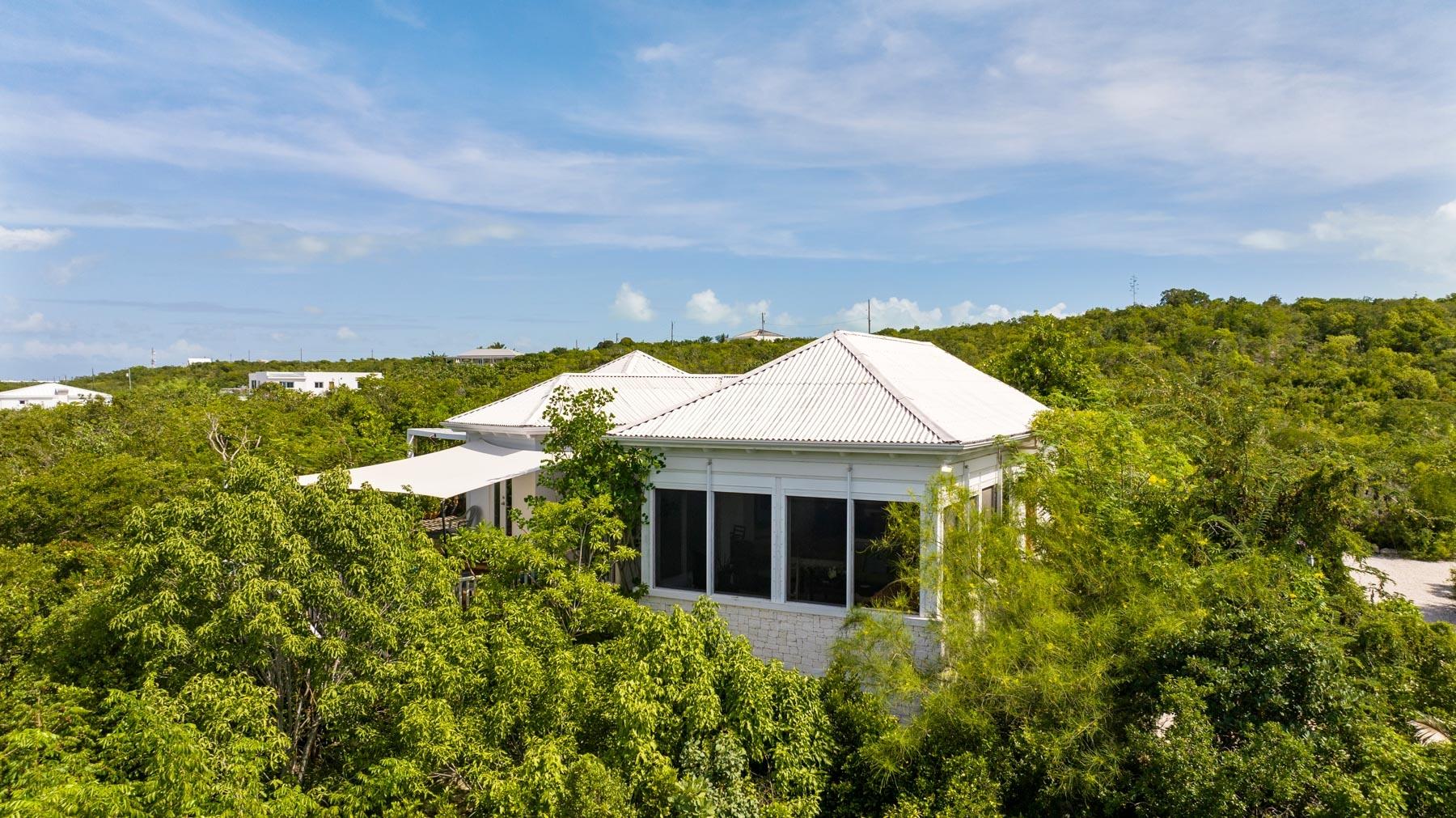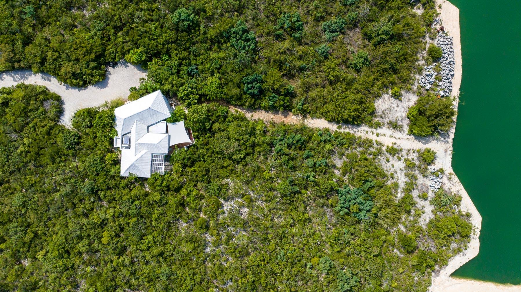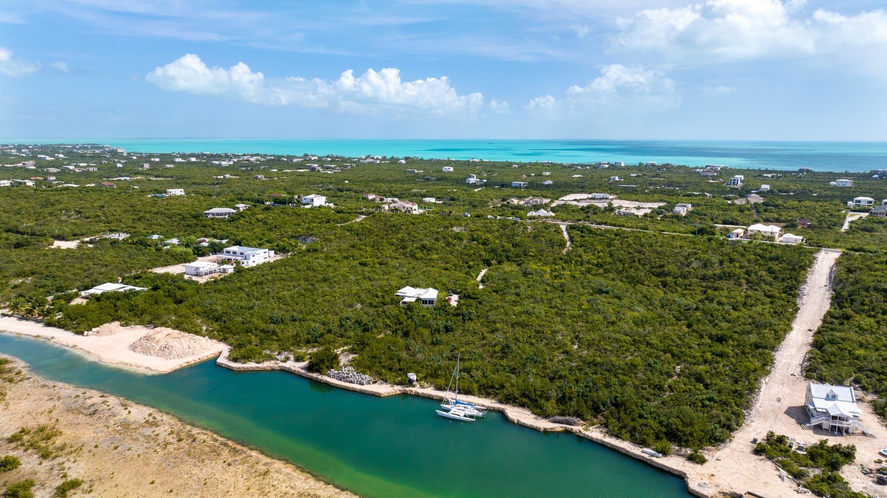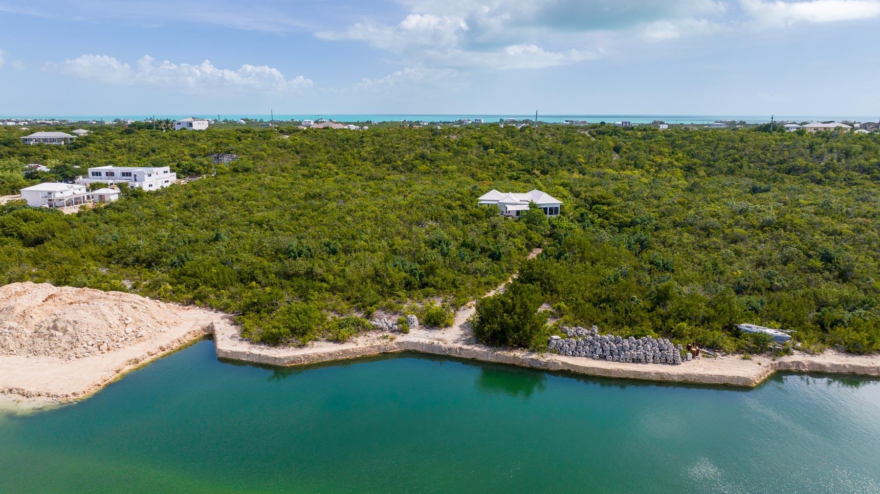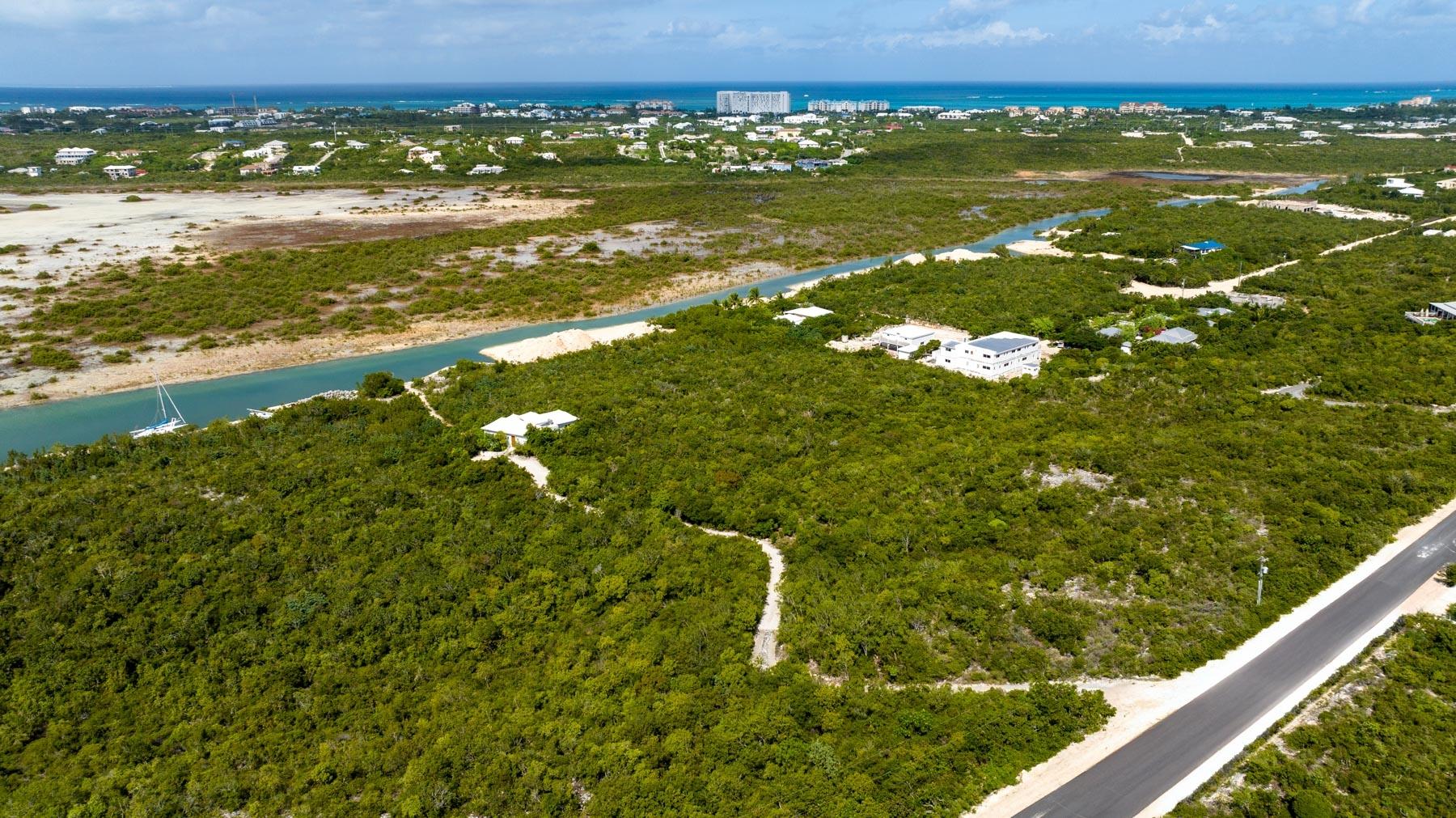 | Description | At 2.44 acres, this one-of-a-kind property slopes 60' in elevation from panoramic views abutting the newly paved Seasage Hill Road down to sea level and offers 145’ of Long Bay Canal frontage. A meandering concrete path driveway weaves through natural vegetation, fruit trees and thoughtfully selected, low maintenance flowering plants. This beautiful, architect designed 2-bedroom bungalow, was conceived in 2015 as a guest house that would eventually see a larger, main house to be built higher up the slope preserving 180° views of Juba Sound and Long Bay Canal. The bungalow is situated closer to the canal and also enjoys unobstructed views to the west where flamingos and other bird life frequently forage during the day, and stunning sunsets light up Juba Sound and the Canal below. The canal has recently been widened and deepened in this area and is perfect for swimming in the crystal clear water. The interior of the bungalow is an open plan with vaulted, open rafter ceilings and an inviting sunken living room area with screened windows on 3 sides and hand hewn native limestone flooring throughout. The open nature of the living area ensures cooling breezes throughout but is protected by power rolldown shutters for security, hurricane protection and breezy/rainy days. The kitchen is well proportioned and appointed with a central island and stainless-steel GE Profile refrigerator and stove. The primary bedroom is a calming space with a custom mahogany, four-poster king bed and custom woodwork. The second bedroom is set up as a dual-purpose office with custom built-in desk and shelving and a guest bed. A spacious bathroom boasts a large bathtub for 2, a bidet, and custom cabinetry. The outer decks and sitting areas surrounded by mature trees only add to the serenity of this special property. There are many possibilities for this property; whether to live in your own secluded bungalow while building a larger main house (existing plans are available) or potentially subdividing the acreage to create an enclave of Villas with canal access and a mere 7 minute drive to Grace Bay. The added benefit to this location is the canal access to the ocean through the newly developed South Bank Resort and Marina only a few minutes by boat to the south, perfect for lunch at Lua Restaurant or Sail Shades Pub. |