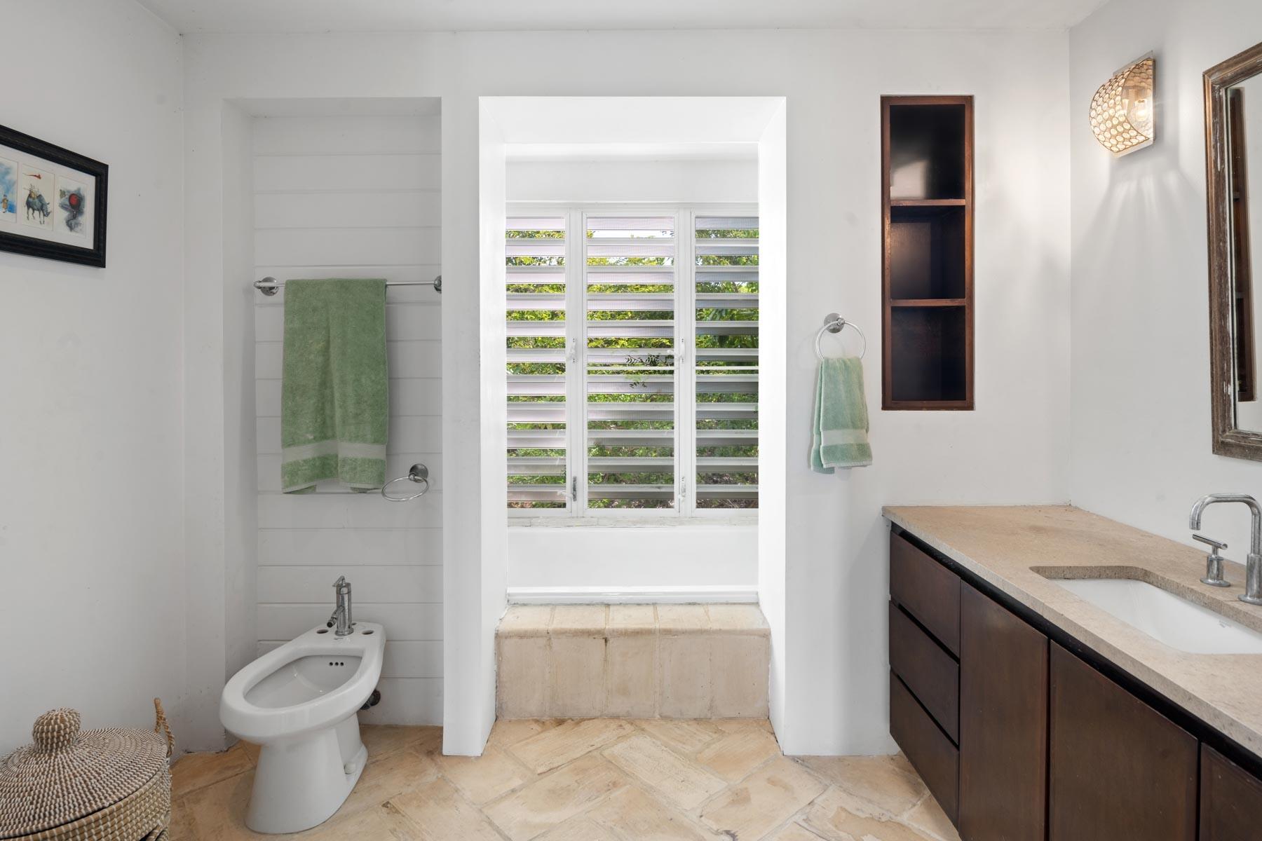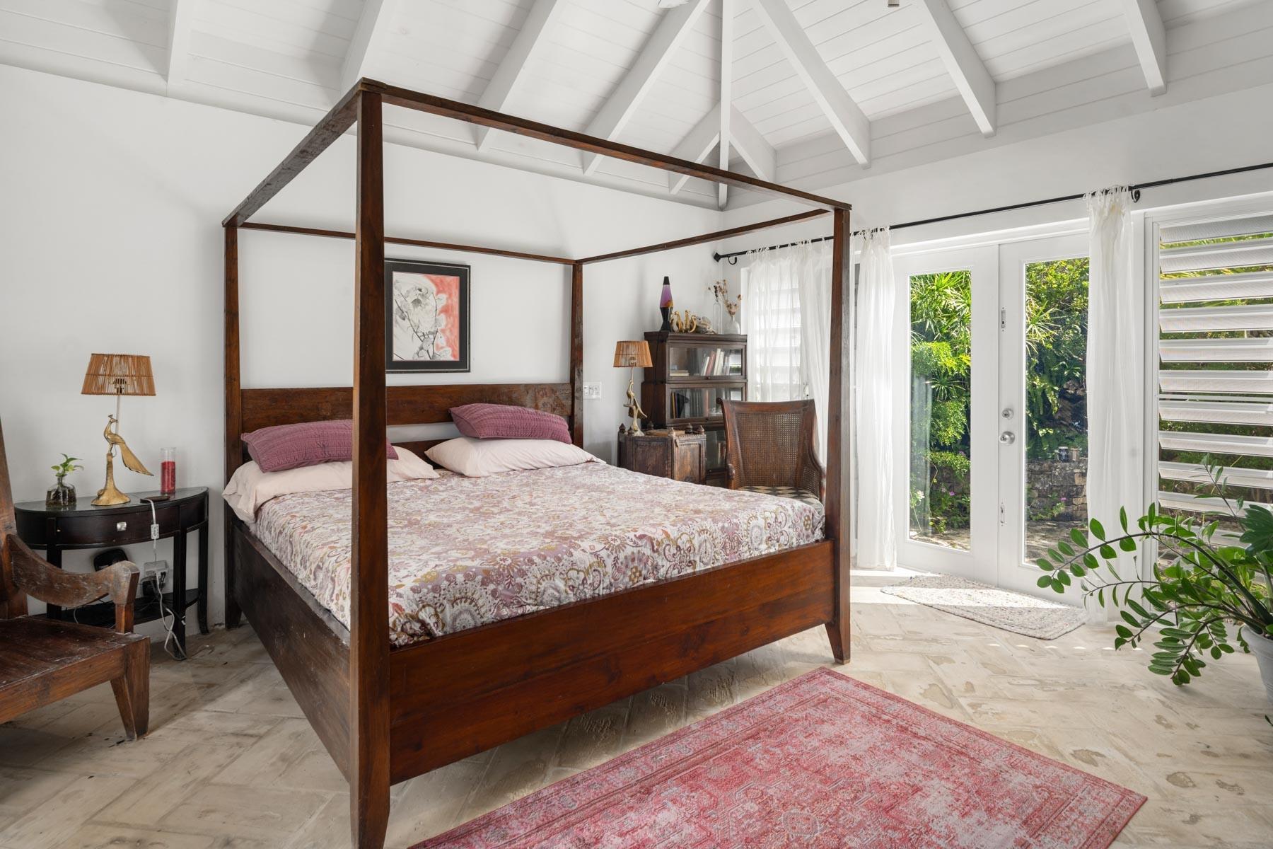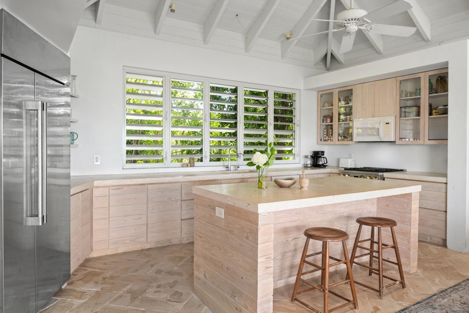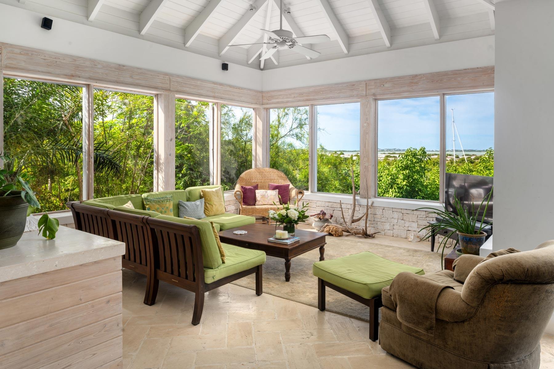| Description | At 2.44 acres, this one-of-a-kind property slopes 60' in elevation from panoramic views abutting the newly paved Seasage Hill Road down to sea level and offers 145’ of Long Bay Canal frontage. A meandering concrete path driveway weaves through natural vegetation, fruit trees and thoughtfully selected, low maintenance flowering plants. This beautiful, architect designed 2-bedroom bungalow, was conceived in 2015 as a guest house that would eventually see a larger, main house to be built higher up the slope preserving 180° views of Juba Sound and Long Bay Canal. The bungalow is situated closer to the canal and also enjoys unobstructed views to the west where flamingos and other bird life frequently forage during the day, and stunning sunsets light up Juba Sound and the Canal below. The canal has recently been widened and deepened in this area and is perfect for swimming in the crystal clear water. The interior of the bungalow is an open plan with vaulted, open rafter ceilings and an inviting sunken living room area with screened windows on 3 sides and hand hewn native limestone flooring throughout. The open nature of the living area ensures cooling breezes throughout but is protected by power rolldown shutters for security, hurricane protection and breezy/rainy days. The kitchen is well proportioned and appointed with a central island and stainless-steel GE Profile refrigerator and stove. The primary bedroom is a calming space with a custom mahogany, four-poster king bed and custom woodwork. The second bedroom is set up as a dual-purpose office with custom built-in desk and shelving and a guest bed. A spacious bathroom boasts a large bathtub for 2, a bidet, and custom cabinetry. The outer decks and sitting areas surrounded by mature trees only add to the serenity of this special property. There are many possibilities for this property; whether to live in your own secluded bungalow while building a larger main house (existing plans are available) or potentially subdividing the acreage to create an enclave of Villas with canal access and a mere 7 minute drive to Grace Bay. The added benefit to this location is the canal access to the ocean through the newly developed South Bank Resort and Marina only a few minutes by boat to the south, perfect for lunch at Lua Restaurant or Sail Shades Pub. |