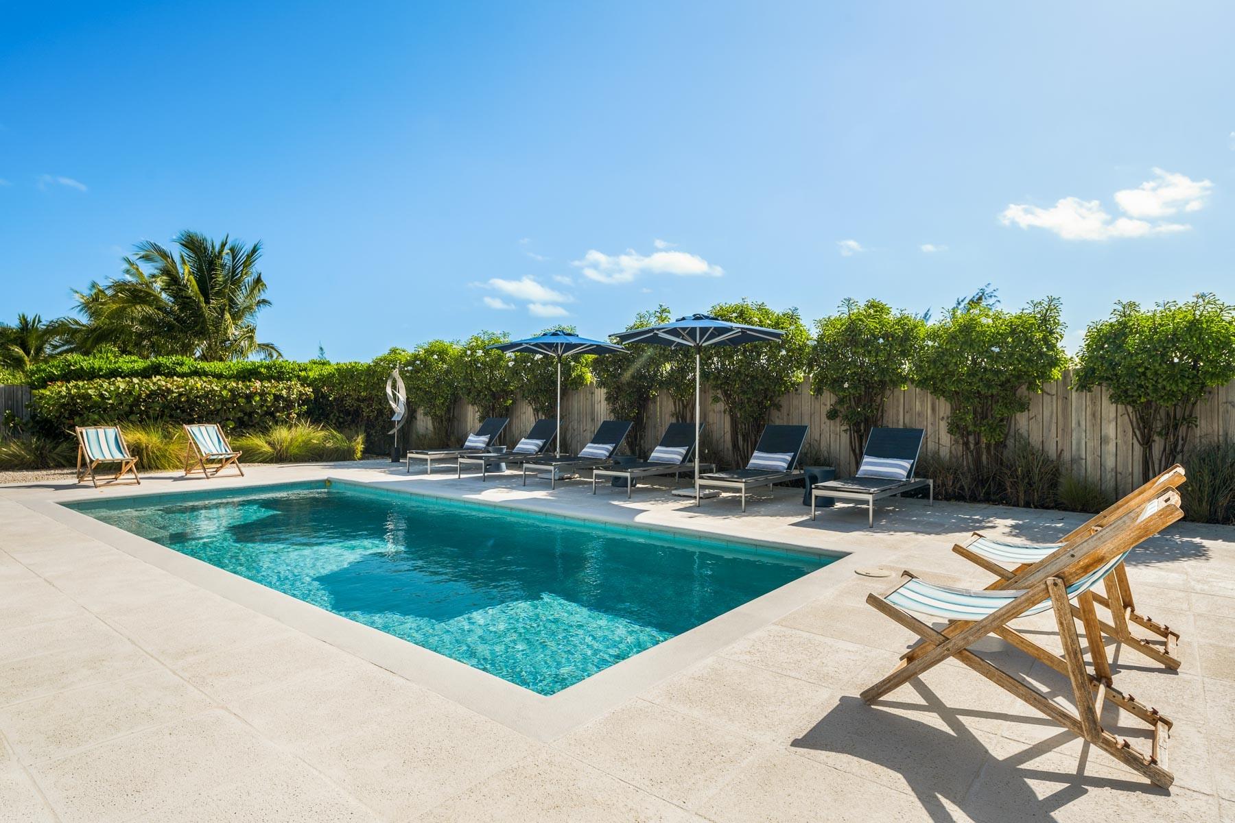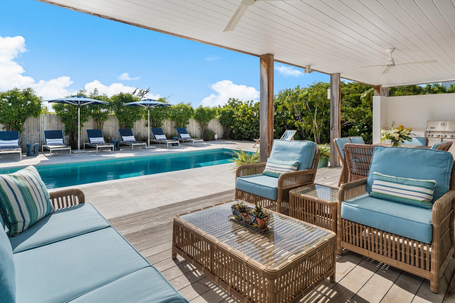 | Description | This meticulously maintained 3 bedroom, 3 bathroom luxury villa combines modern elegance with island “beach house” charm a mere 6 minute walk to Grace Bay Beach. Since its completion in May 2019, the villa has been occupied solely by its owners for about half of each year, ensuring it remains in pristine, never-rented condition. The owners pride themselves on their clever design features and upgrades that sets this villa apart from others in the neighborhood. The private entrance opens into a large walled courtyard perfect for entertaining or as a secure kid’s play area. There is also a very convenient storage building for bicycles and beach toys in one corner. Upon entering the Villa, you are welcomed by an open-concept great room adorned with Serena & Lily furnishings, lending an upscale coastal vibe which blends style with the durability of high-quality fabrics. To the left of the entrance is a well-appointed laundry room with a second refrigerator, wash sink, and ample storage (lockable cabinets included) exemplifying the attention to functionality and the logical layout for Villa #6. The living and dining areas flow seamlessly to the perfect entertaining kitchen complete with GE Profile appliances, quartz countertops and large island/bar, all under a soaring 20’ vaulted ceiling. The first-floor bedroom, with direct access to the courtyard, boasts nightstands and a dresser from Williams Sonoma Home, reflecting the same high standard of design. The built-in wall unit in the great room and custom closets in both upstairs bedrooms showcase thoughtful craftsmanship complemented by Serena and Lily furnishings chosen for each of the spacious and stylish upper bedrooms. The main bedroom deck provides beautiful ocean and sunset views, perfect for morning coffee or afternoon cocktails. The villa features three beautifully designed bathrooms, including a convenient outdoor shower/change room, poolside. The interior bathrooms are decorated with high-end faux grass cloth wallpaper for a touch of texture and elegance. Outside, the villa’s appeal only grows with a large 12’x30’ pool, enhanced with a solar heating system, surrounded by a brand-new concrete deck installed in spring 2024. Whether you’re drawn to the refined interiors, custom enhancements, or the inviting outdoor spaces, this villa presents a rare opportunity to own a private sanctuary in Turks and Caicos Islands’ most desired neighborhood, with the flexibility for rental investment potential should you desire. |