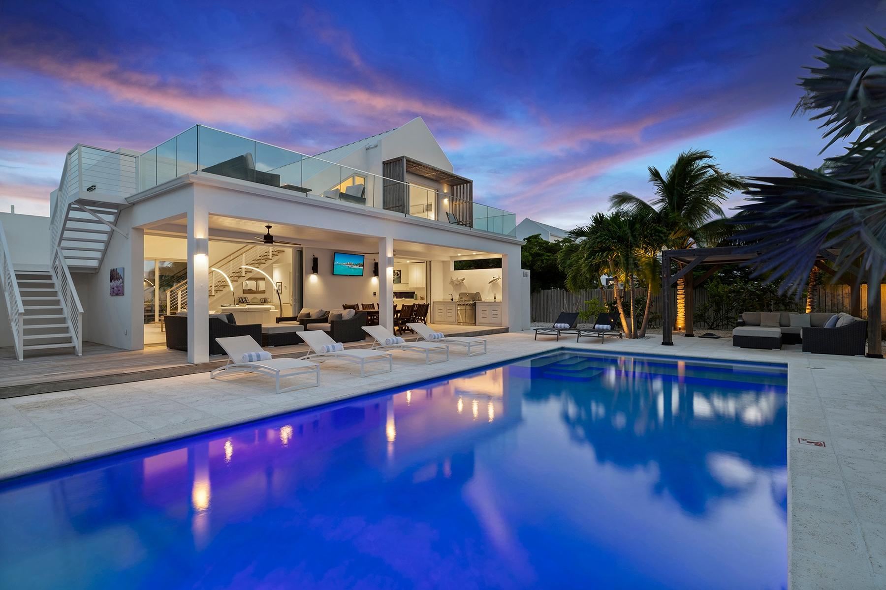 | Description | Where Luxury Meets Latitude. Villa 15 at Sunset Beach Villas “Unparalleled 21’ Villa” is a new 5-bedroom ocean view villa completed in 2023, representing the final residence in the prestigious 14-home Sunset Beach community. Positioned at the 21st parallel with protected beach access and magnificent ocean vistas, steps from Grace Bay Beach. Distinctive features include an expansive 600 sq. ft. second-level balcony with dual access including private external staircase. Extended 15' x 36' pool is perfectly situated along the ocean view side of the home. Contemporary floating staircase and oversized kitchen island with integrated range define the refined open-plan living space. Premium appointments include dual fire tables, indoor/outdoor SONOS audio, covered terrace entertainment area with TV, propane pool heater, 18KW Generac generator, 6-seater golf cart, additional ice maker, air-conditioned storage addition, poolside gazebo, and curated landscaping with ambient lighting. The villa offers 6,708 sq. ft. total finished space with 2,996 sq. ft. of interior living area and 5.5 bathrooms. Primary suite and second bedroom feature lock-off capability, enabling 3-bedroom rental configurations while maintaining privacy, in addition to full 5-bedroom rental options. Located in a secure gated community with gated beach access and complimentary beach amenities. Offered fully furnished and ready for immediate occupancy. |