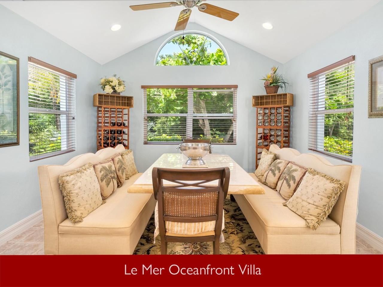| Description | Le Mer Oceanfront Villa Le Mer is an enchanting Turtle Tail oceanfront villa set on Bristol Hill, along nearly 150 ft. of pristine turquoise ocean frontage. This elegant 4-bedroom, 2-bathroom traditional-style residence captures the essence of Caribbean island living in one of Providenciales’ most private and tranquil beachfront enclaves. Thoughtfully built over 20 years ago, the home has been lovingly maintained, reflecting quality craftsmanship and enduring Turks and Caicos Islands allure . Designed to take full advantage of its natural surroundings, the open-plan living and dining areas feature tray ceilings and panoramic ocean views, while the well-appointed kitchen flows seamlessly into the home’s dining room—ideal for relaxed entertaining. The primary suite and second bedroom suite opens directly onto the beachfront terrace, where gentle sea breezes and sweeping sunset views create a serene sanctuary. An additional guest bedroom offer comfort and privacy, and a versatile den provides the option of a fourth bedroom or home office. Surrounded by mature tropical landscaping, shaded terraces, and the soothing sound of the sea, this classic island home blends old-world charm with the effortless lifestyle of the Turks and Caicos Islands. In addition, Le Mer benefits from a low tide beach and sea level sun deck with access steps to the ocean. Perfect for the discerning buyer seeking authenticity, privacy, and timeless coastal beauty. |