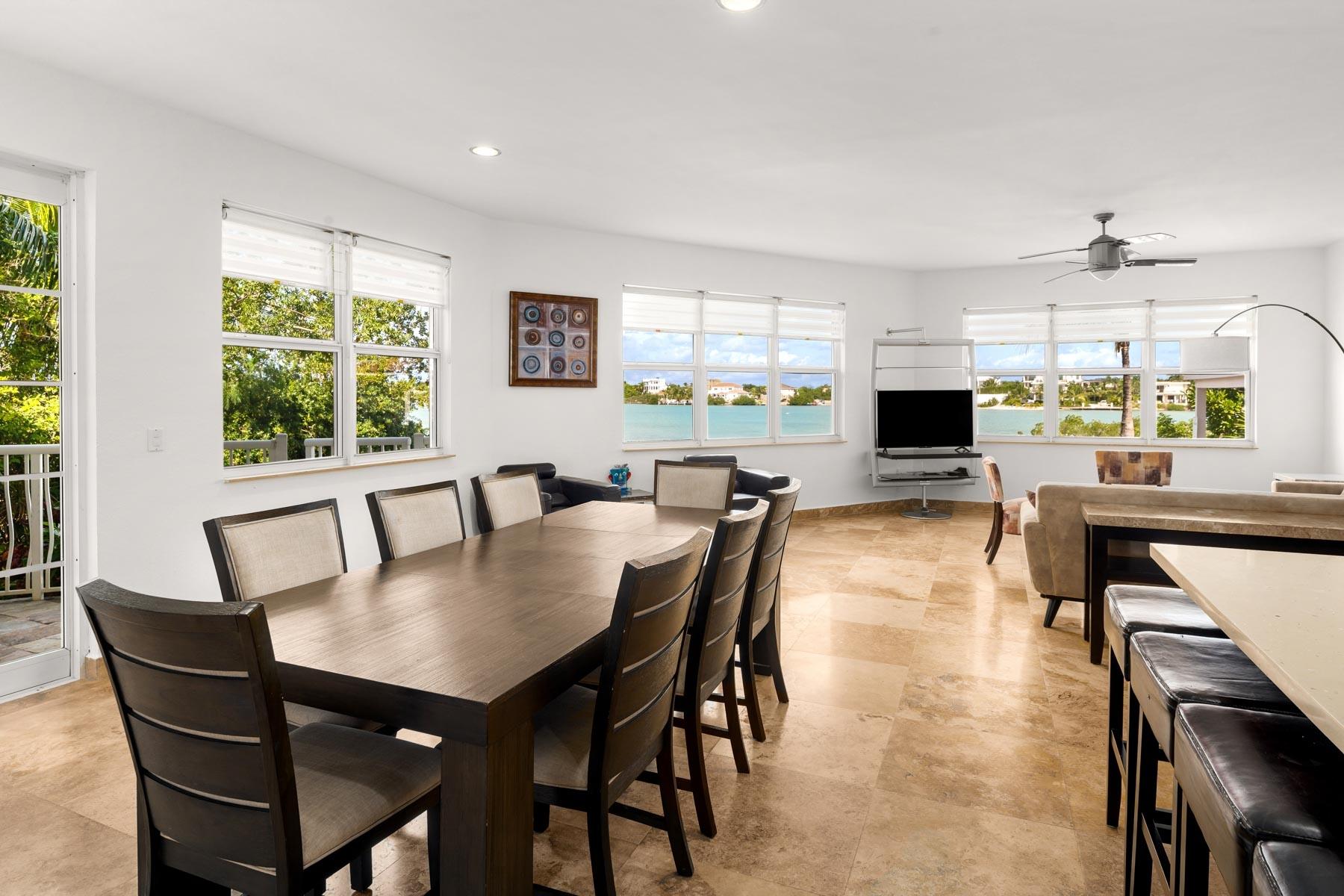 | Description | Just a short stroll from the world-renowned Taylor Bay Beach, you'll find Seashore Villa—a stunning 5-bedroom, 4-bathroom, 3,700-square-foot beachfront home nestled on the exclusive Silly Creek peninsula along the southern shore of Providenciales. Recently renovated, this luxurious villa features an expansive open-concept living, dining, and kitchen area, seamlessly extending to an outdoor dining space. It's the perfect spot to savor your morning coffee while watching the sunrise or enjoy a sunset cocktail. The beach level includes a spacious guest bedroom and a primary suite, both with en suite bathrooms. Upstairs, three additional bedrooms offer breathtaking views of Silly Creek, the Caicos Banks, and nearby Taylor Bay. The elevated primary suite on this level boasts a wall of windows framing the serene waters of Silly Creek, along with a generous walk-in closet and an elegant master bathroom. The home is outfitted with premium appliances and hurricane-rated windows throughout. Beyond the main living areas, the property includes a substantial basement, partially finished for additional storage or flexible use. Outdoors, the exclusive beach leads to a sunset dock—an idyllic spot to unwind, launch kayaks or paddleboards, or observe the bonefish gliding through the shallow waters of Silly Creek. This exceptional property offers the perfect blend of luxury, tranquility, and adventure. |