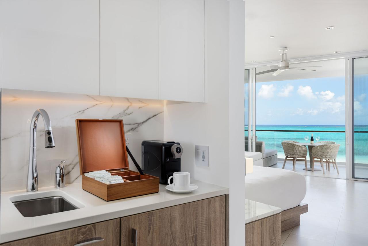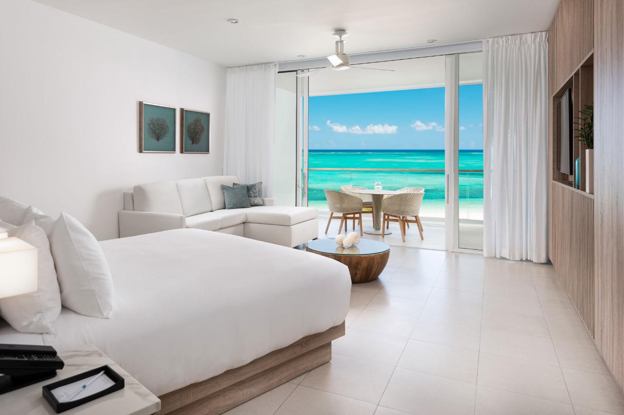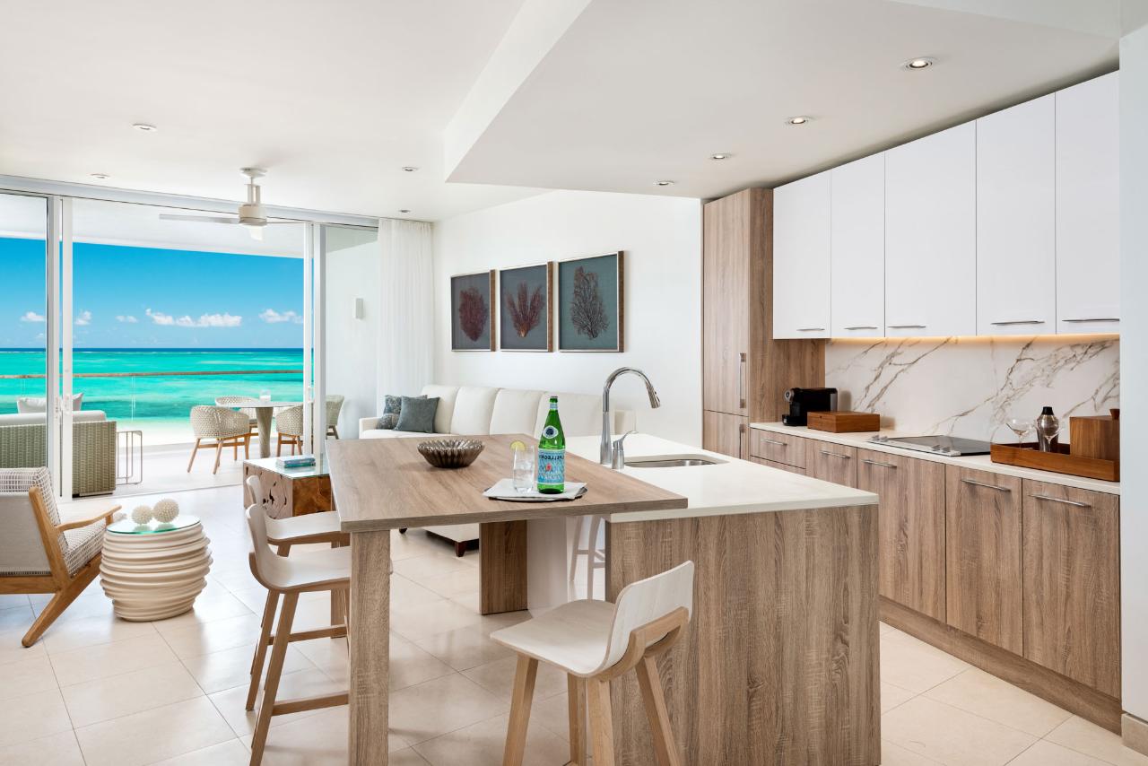 | Description | This exceptional, fourth level suite at Wymara Resort offers incredible vistas of the expansive resort beachfront on beautiful Grace Bay coupled with a sophisticated yet understated elegance in a contemporary design. The newly renovated suite is the only one of its kind on this level, offering two spacious, private balconies and is a proven performer in the rental management program. Features include floor to ceiling sliding doors, custom millwork throughout, center island kitchen with high end appliances, free-standing bathtub and large ensuite in the primary bedroom, chic furnishings, and washer/dryer. The 2-bedroom, 2-bathroom, 1,835 SF condominium is conveniently separated by an entrance foyer creating a one-bedroom main suite and a lockout studio suite allowing owners to benefit from increased revenue income. Wymara Resort amenities include a 7,000 square foot infinity-edge pool, a well-appointed spa, a state-of-the-art fitness center, signature restaurant ‘Indigo’, beachfront restaurant ‘Blue Water Bistro’ and 24-hour security, concierge services. |