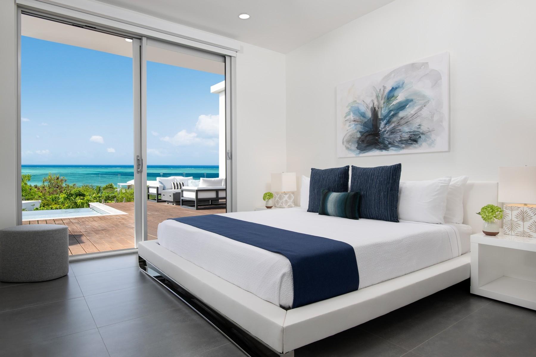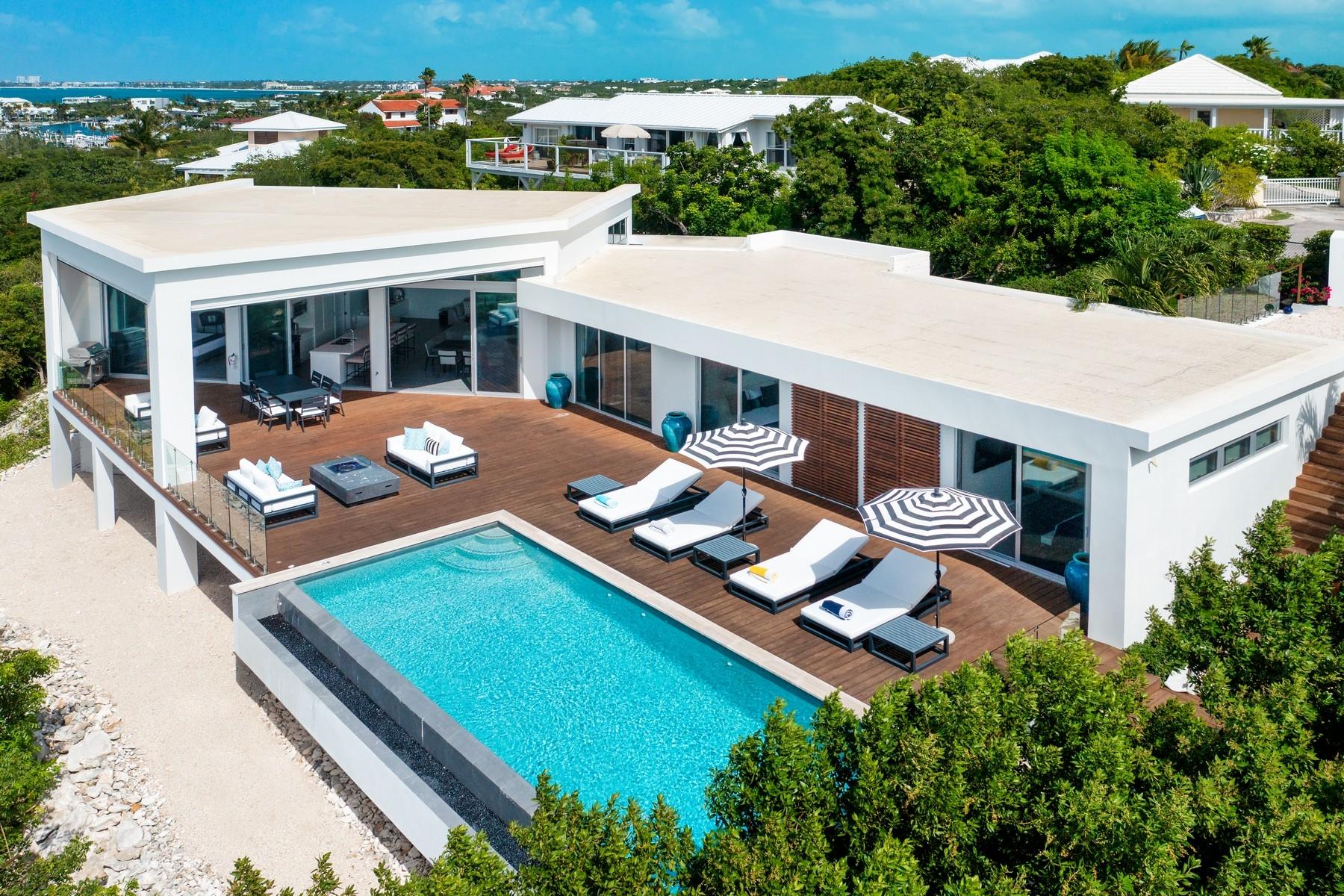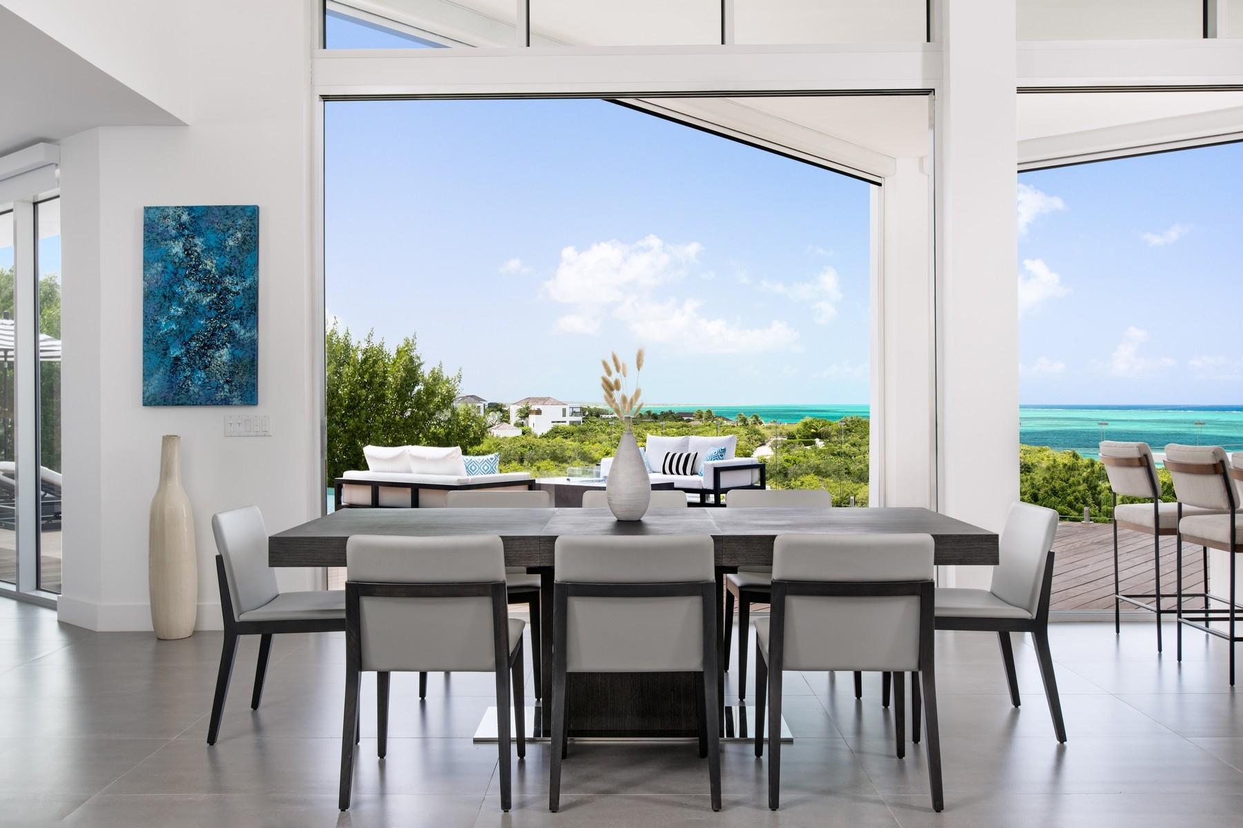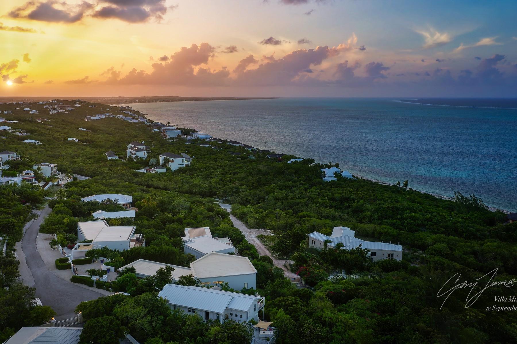 | Description | Tucked into the hillside overlooking the dazzling waters of the North Shore of Providenciales, you will find “Mistral”, a perfectly positioned luxury Villa designed to showcase jaw dropping views while enjoying the eastern trade wind breezes. Stepping through the beautiful glass front door into the main living area you are presented with an open floor plan with living room, dining and kitchen all under 13’ ceilings. This forward focussed space projects the view through 10’ sliding doors and 3’ high transom windows creating a spectacular wall of glass. The kitchen is stylishly appointed with white quartz island and countertops, high- end appliances and a wall of flat-front white cabinetry. Each space blends perfectly with well matched contemporary furnishings accented by tasteful art on the walls. Hidden away behind the kitchen area is the main bedroom complete with walk in closet and luxuriously appointed ensuite bathroom. The 10’ pocket sliding doors open wide keeping the theme of seamlessly blending interior and exterior living. The other two bedrooms also enjoy ensuite bathrooms all designed with white quartz stone, simple white cabinetry, Kohler fixtures and clever sliding doors leading to the pool through the showers! As stylish and comfortable as the interior is, this Villa is really about the outdoor spaces. The rich Ipe decking compliments a 30’ x 12’ infinity pool that seems to flow into the north shore ocean in the near distance. All pool equipment including the propane powered heater, salt water chlorine generator and remote wireless controls is Pentair. There is a huge triangular covered deck designed with custom, power rolldown insect screens stretching across each span enhancing the views of the ocean while effectively adding to the usable living space. There is ample space around the pool featuring several seating areas and a propane fire pit for evening ambiance. Below the front deck there is a large utility room that doubles as storage and workshop space. The Villa was designed to capture rain water for irrigating the lush landscaping from the 12,000 gallon cistern. Other ideal upgrades include 2 Rinnai propane powered instant hot water heaters, a fully fenced yard with power gate and video intercom to communicate with guests arriving at the Villa. With all it has going for it and only a 7 minute walk to Babalua Beach access, Mistral enjoys an established vacation rental revenue stream and Property Manager overseeing future bookings in place. |