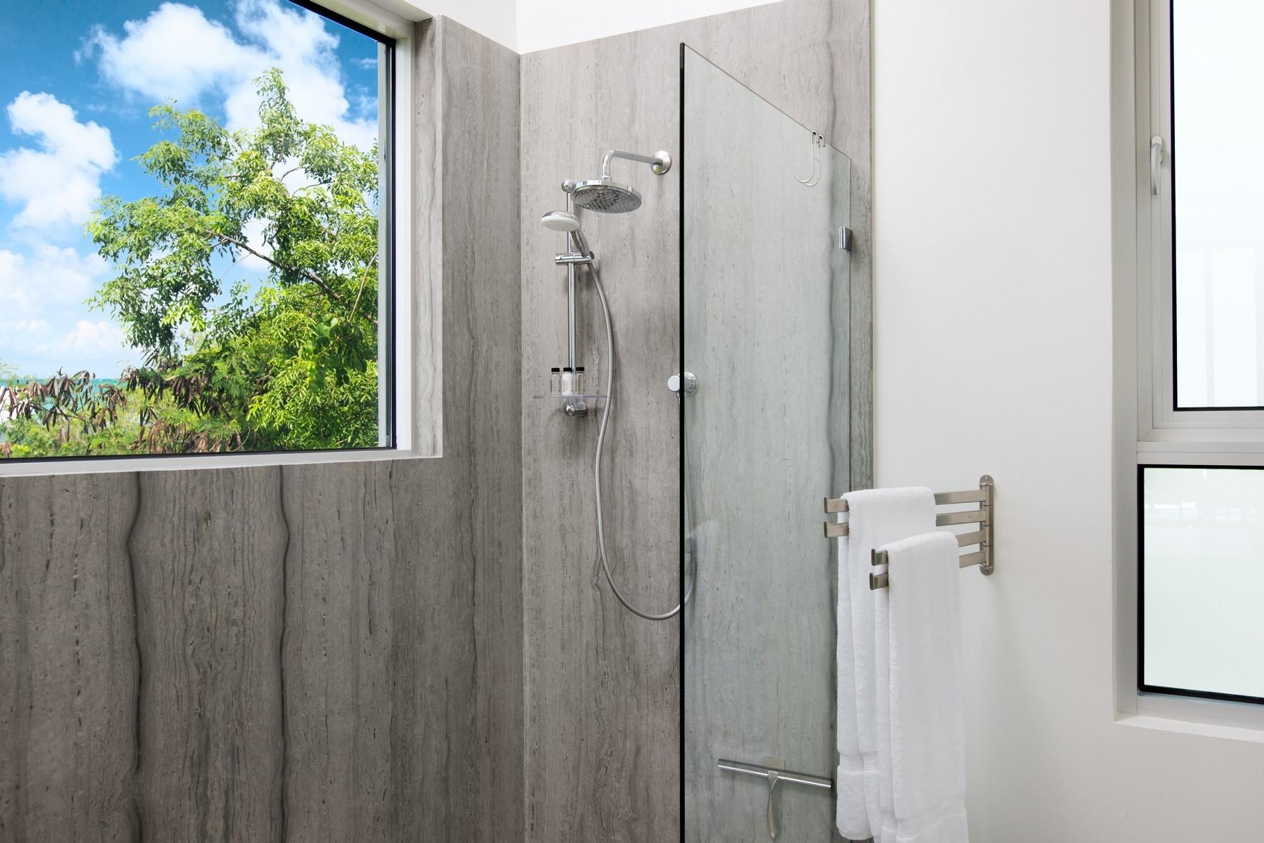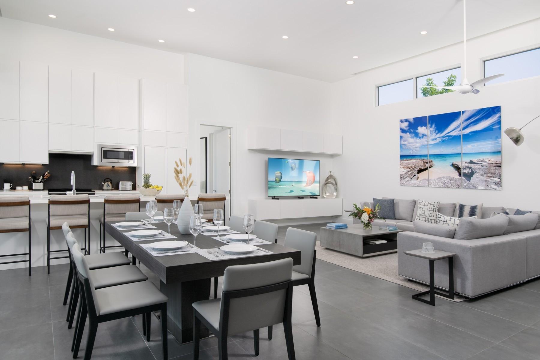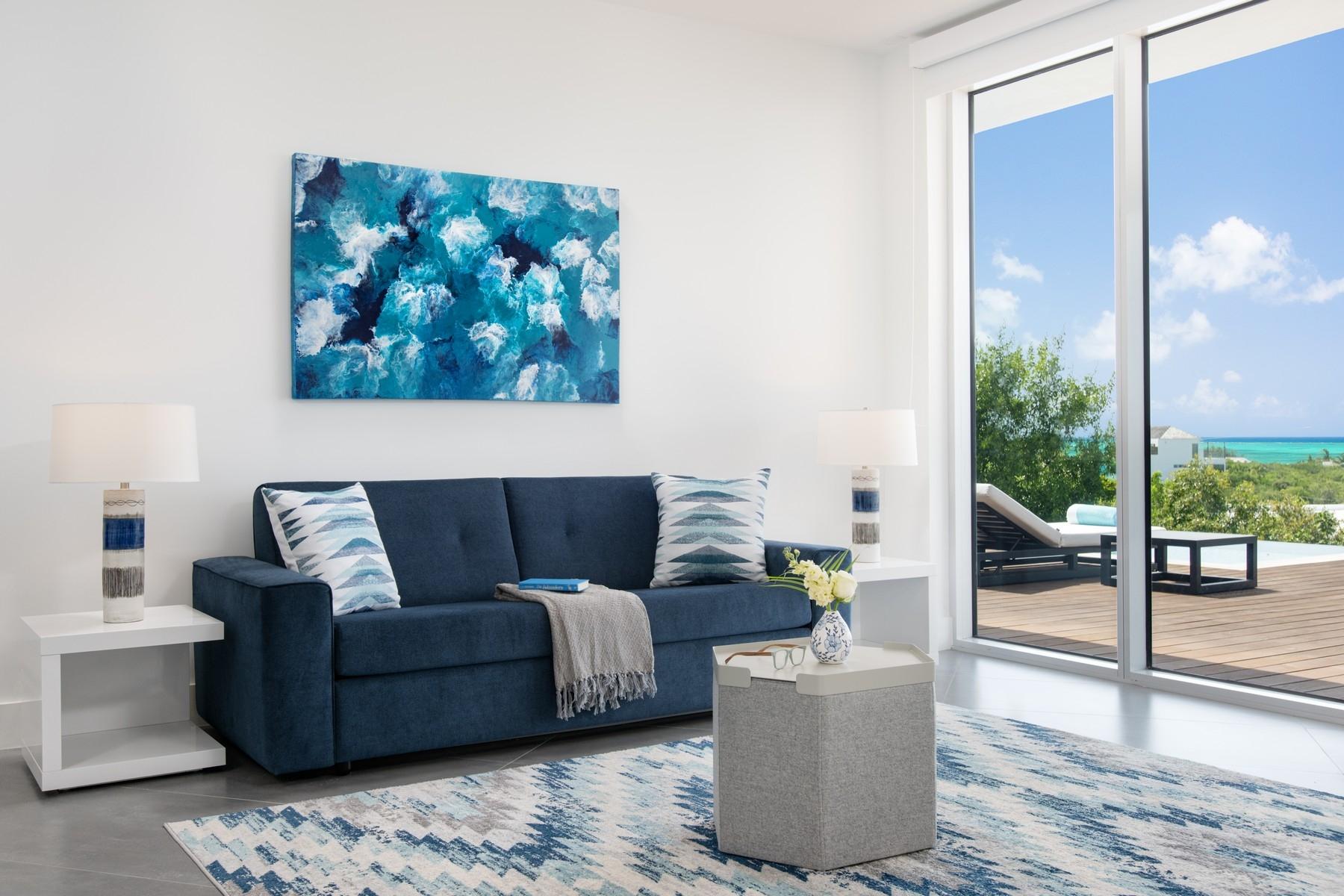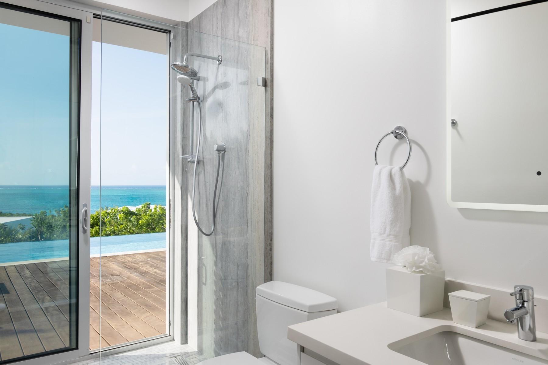 | Description | Tucked into the hillside overlooking the dazzling waters of the North Shore of Providenciales, you will find “Mistral”, a perfectly positioned luxury Villa designed to showcase jaw dropping views while enjoying the eastern trade wind breezes. Stepping through the beautiful glass front door into the main living area you are presented with an open floor plan with living room, dining and kitchen all under 13’ ceilings. This forward focussed space projects the view through 10’ sliding doors and 3’ high transom windows creating a spectacular wall of glass. The kitchen is stylishly appointed with white quartz island and countertops, high- end appliances and a wall of flat-front white cabinetry. Each space blends perfectly with well matched contemporary furnishings accented by tasteful art on the walls. Hidden away behind the kitchen area is the main bedroom complete with walk in closet and luxuriously appointed ensuite bathroom. The 10’ pocket sliding doors open wide keeping the theme of seamlessly blending interior and exterior living. The other two bedrooms also enjoy ensuite bathrooms all designed with white quartz stone, simple white cabinetry, Kohler fixtures and clever sliding doors leading to the pool through the showers! As stylish and comfortable as the interior is, this Villa is really about the outdoor spaces. The rich Ipe decking compliments a 30’ x 12’ infinity pool that seems to flow into the north shore ocean in the near distance. All pool equipment including the propane powered heater, salt water chlorine generator and remote wireless controls is Pentair. There is a huge triangular covered deck designed with custom, power rolldown insect screens stretching across each span enhancing the views of the ocean while effectively adding to the usable living space. There is ample space around the pool featuring several seating areas and a propane fire pit for evening ambiance. Below the front deck there is a large utility room that doubles as storage and workshop space. The Villa was designed to capture rain water for irrigating the lush landscaping from the 12,000 gallon cistern. Other ideal upgrades include 2 Rinnai propane powered instant hot water heaters, a fully fenced yard with power gate and video intercom to communicate with guests arriving at the Villa. With all it has going for it and only a 7 minute walk to Babalua Beach access, Mistral enjoys an established vacation rental revenue stream and Property Manager overseeing future bookings in place. |
