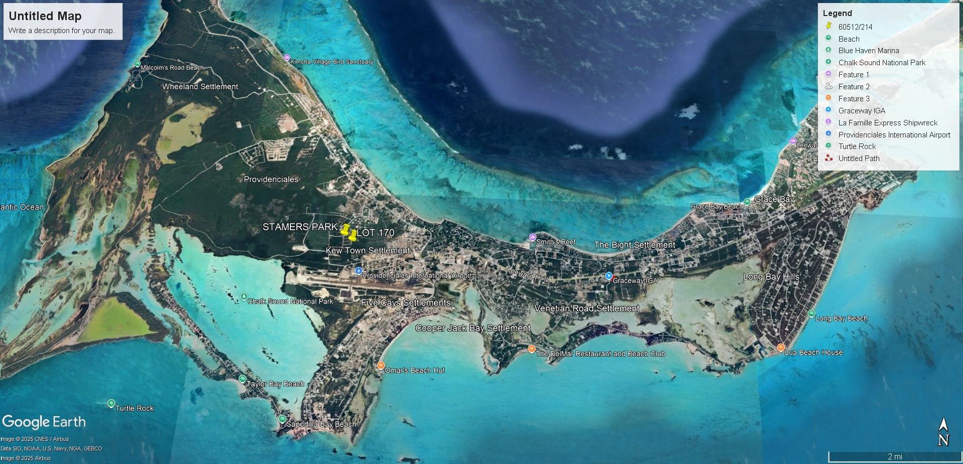 | Description | STAMERS PARK LOT 170 Spacious 0.28 building lot in brand new Stamers Park subdivision. Less than 1 mile from the west end of Providenciales airport, where a new terminal building is to be located. Underground utilities being installed. Bounded on the East side by an open space. Very good value in the present market with price appreciation potential. Adjacent lot 169 and other nearby lots are also available for purchase |