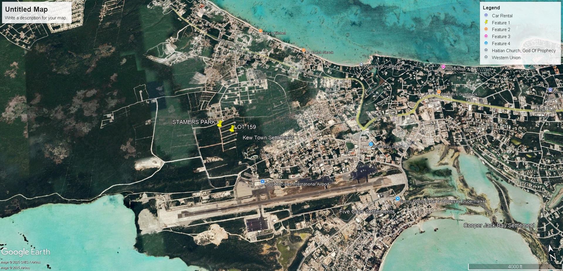 | Description | STAMERS PARK LOT 159 Large 0.27 acre building lot in brand new Stamers Park subdivision. Less than 1 mile from the west end of Providenciales airport, where a new terminal building is to be located. Underground utilities being installed. Very good value in the present market with price appreciation potential. Adjacent lots 158 and 160 and other nearby lots are also available for purchase |