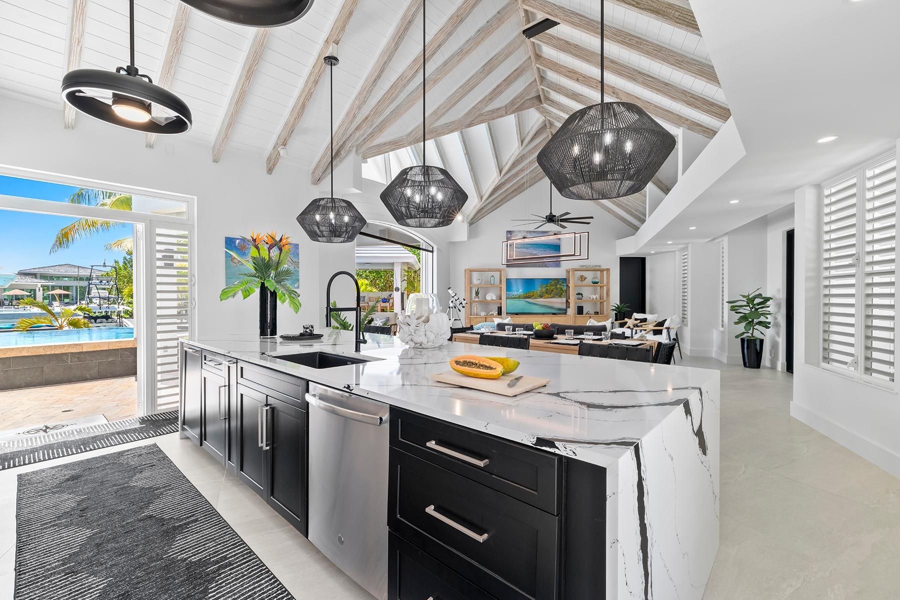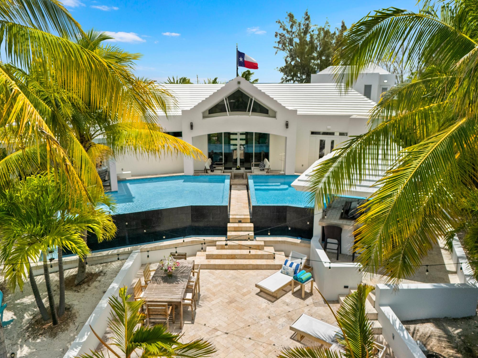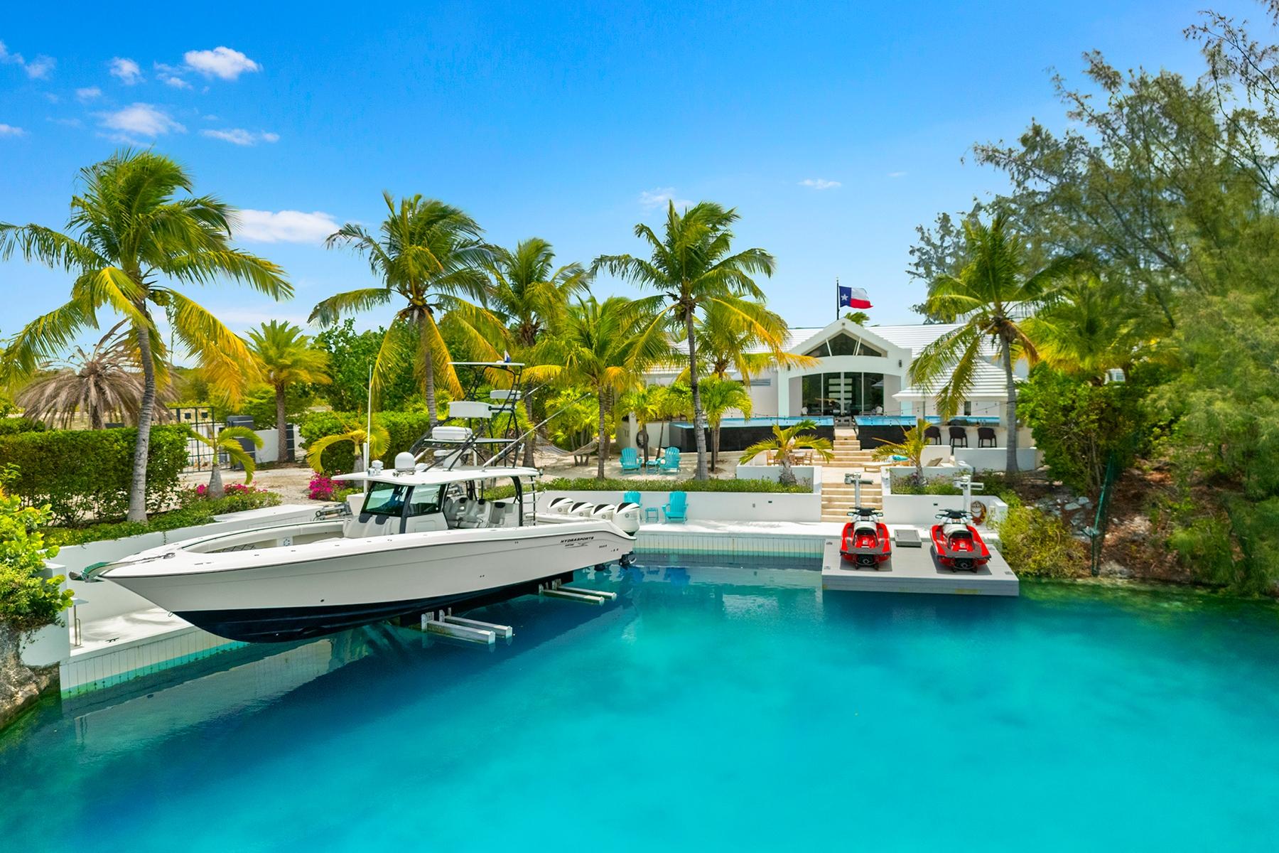 | Description | Hogan House Canal Front Governor's Road Located in the highly sought-after Leeward area of Providenciales, this 4-bedroom, 3.5-bath villa sits on a prime corner lot at Governor’s Road and Sea Cotton Lane. The home features seamless indoor-outdoor living with a spacious terrace overlooking canal and ocean views, two infinity pools (kid-friendly and adult), a swim-up bar, and multiple lounging and dining areas—perfect for entertaining or relaxing island-style. Tastefully finished with travertine marble floors, granite countertops, and elegant furnishings throughout. The primary suite opens directly to the pool terrace and includes a luxurious en-suite with outdoor shower, soaking tub, double vanities, and his-and-hers closets. High ceilings, louvered windows, and large sliding doors enhance the open, airy feel. Recently renovated and move-in ready. Additional features include a generator, irrigation well, lush landscaping, two-car garage with carport, and gated stone wall enclosure. Optional purchase of boat, wave runner, and Jeep available for as a separate purchase. |