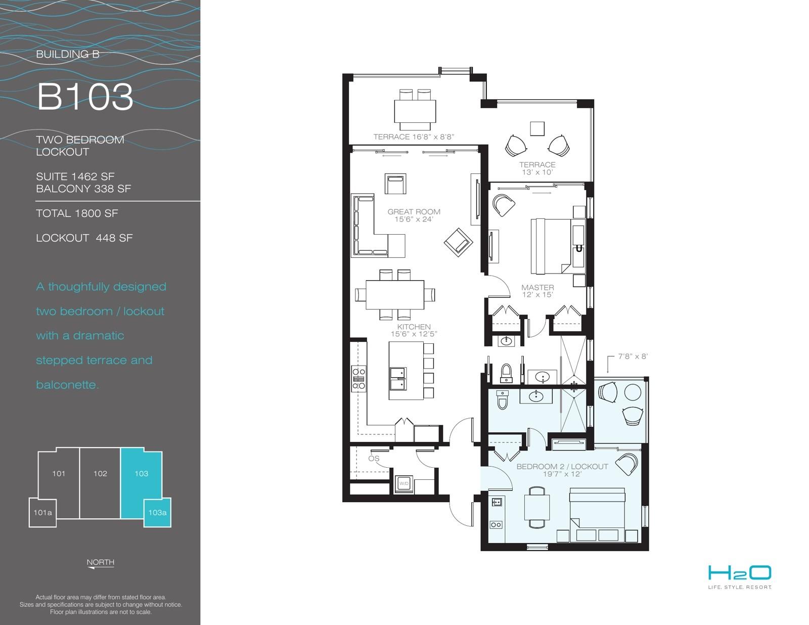 | Description | B103- H2O Life Style Resort Unit B103 is a thoughtfully designed 2-bedroom, 2-bath condominium with a lockout studio, allowing it to function as a spacious two-bedroom residence or as two separate rental units—maximizing rental income and owner use. This 1,800 sq ft corner unit is just steps from the beach and is one of the most popular rentals within the 16-unit boutique resort. An on-site rental management program ensures effortless ownership for investment-focused buyers. The unit is in pristine condition and features a premium appliance package, high-end furnishings, generous owner lockout storage (including a dedicated locker), and two expansive balconies overlooking the turquoise waters of the Caicos Banks. Enjoy permanently unobstructed ocean views and exceptional privacy provided by the adjacent four-acre protected green space. Residents have access to two swimming pools and hot tubs, the Hang Time beach bar, an in-house kite and wing academy, surf shop, a 24-hour fitness center, tennis, basketball, and pickleball courts, a full selection of paddleboards, e-foils, and Hobie Cats, as well as a spacious rooftop terrace ideal for sunset views and morning yoga. Directly beneath the unit is a covered parking garage, offering convenient access and year-round protection from the elements. Set along the dunes of Long Bay’s scenic three-mile beach, H2O is just a quarter-mile beach walk to the restaurants at The Shore Club and a seven-minute drive to the heart of Grace Bay. H2O delivers a lifestyle perfectly balanced between world-class watersports and the tranquil residential atmosphere Long Bay is known for. |
