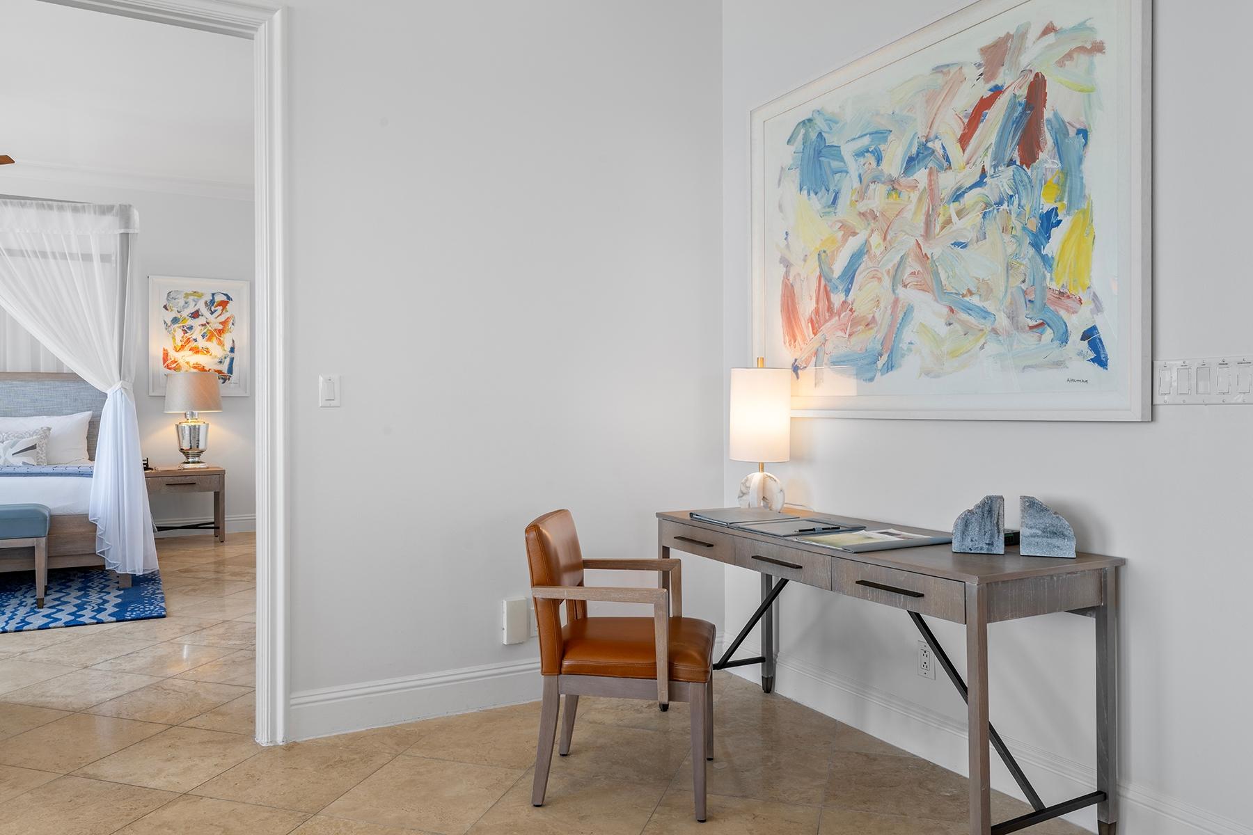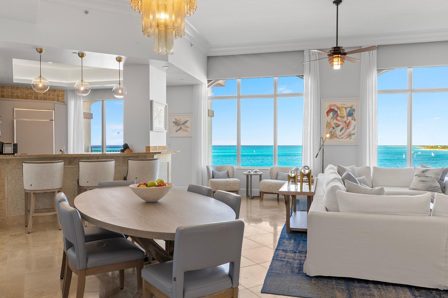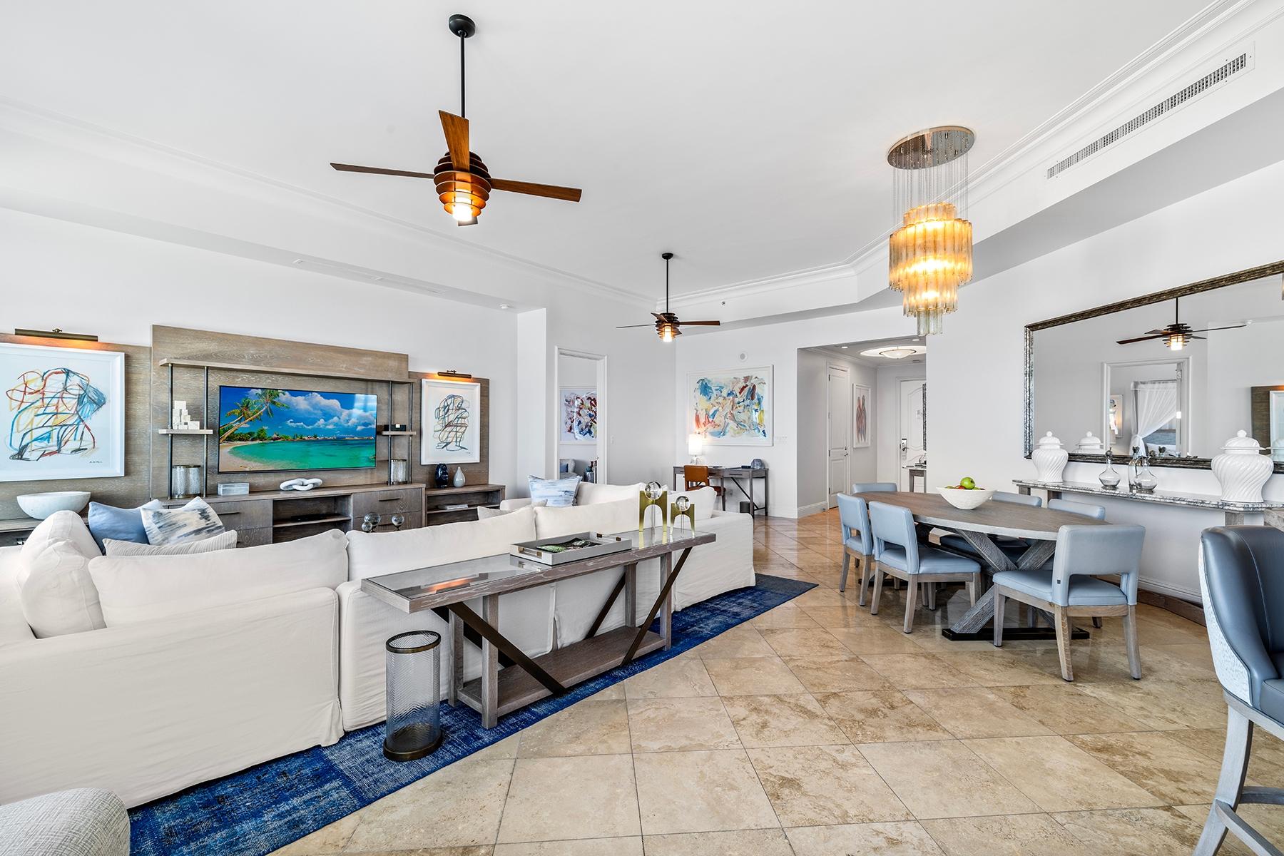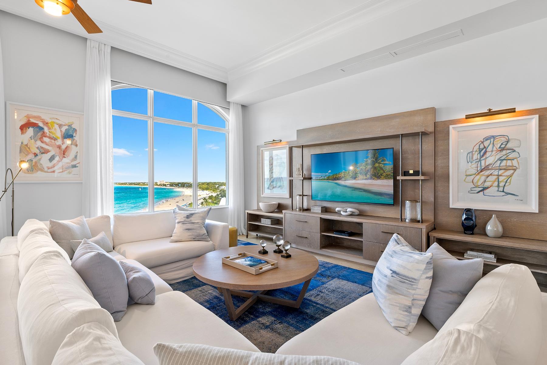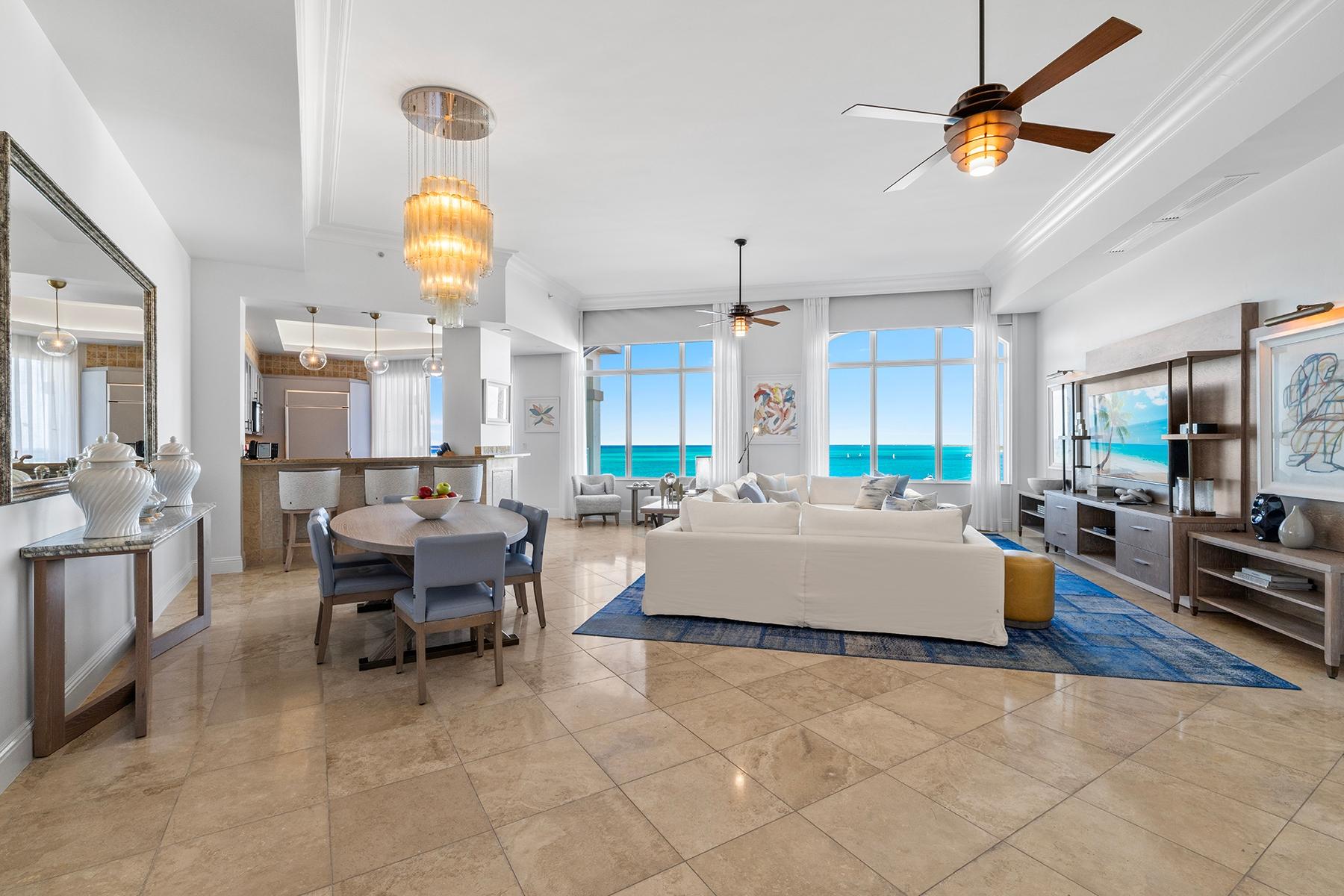 | Description | a generous 2,032 SF one-bedroom residence and an adjoining 794 SF two-bedroom suite, each with independent access and distinct appeal. The primary residence features an expansive oceanfront master suite with sweeping views across Grace Bay toward Leeward Point and the outer cays. High ceilings and floor-to-ceiling glass capture the remarkable 180-degree perspective that distinguishes this top-floor position. The secondary two-bedroom suite, equipped with its own kitchenette and en-suite bathrooms in both bedrooms, functions seamlessly as guest quarters, rental income generator, or standalone investment. Includes deeded underground parking space and storage. |