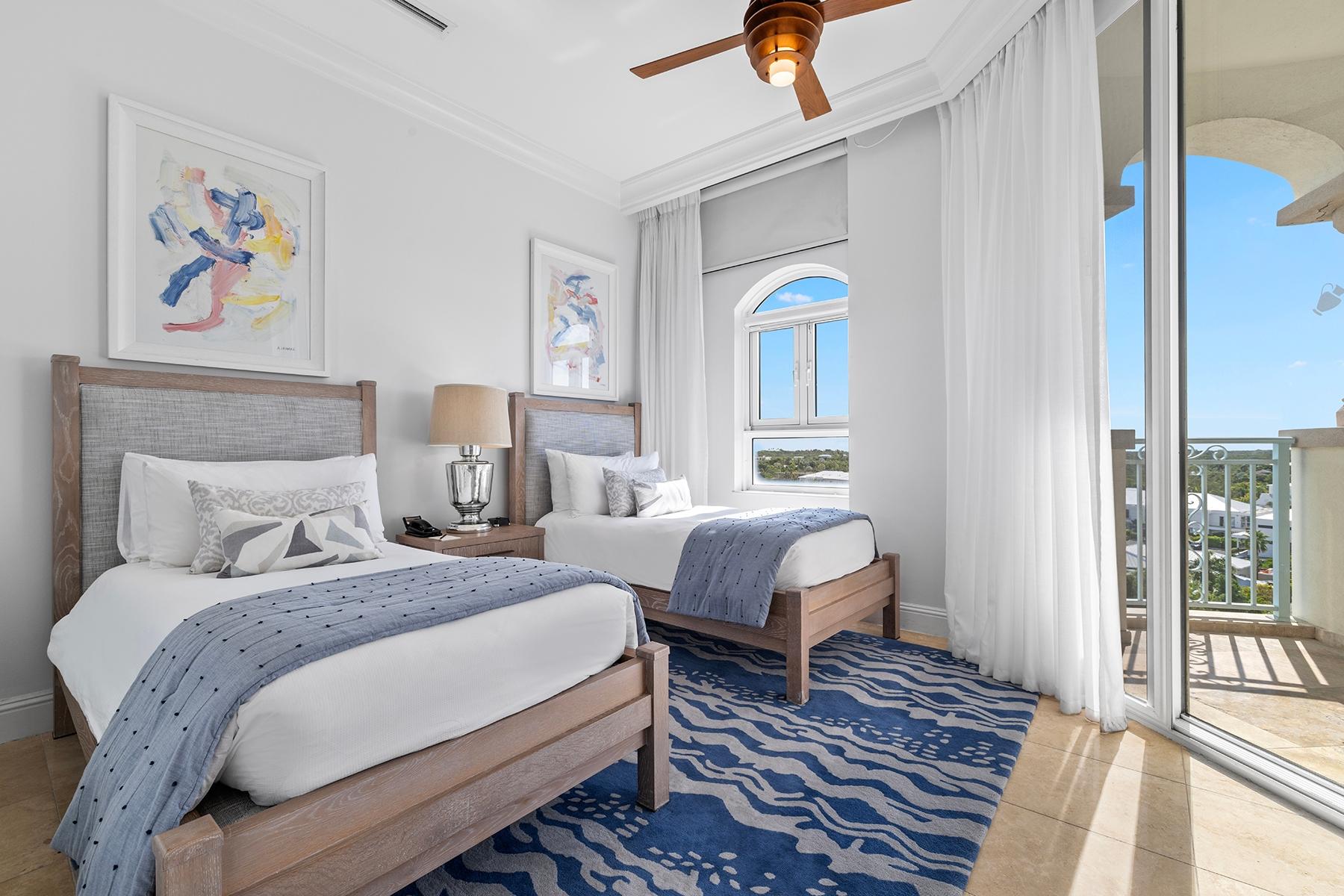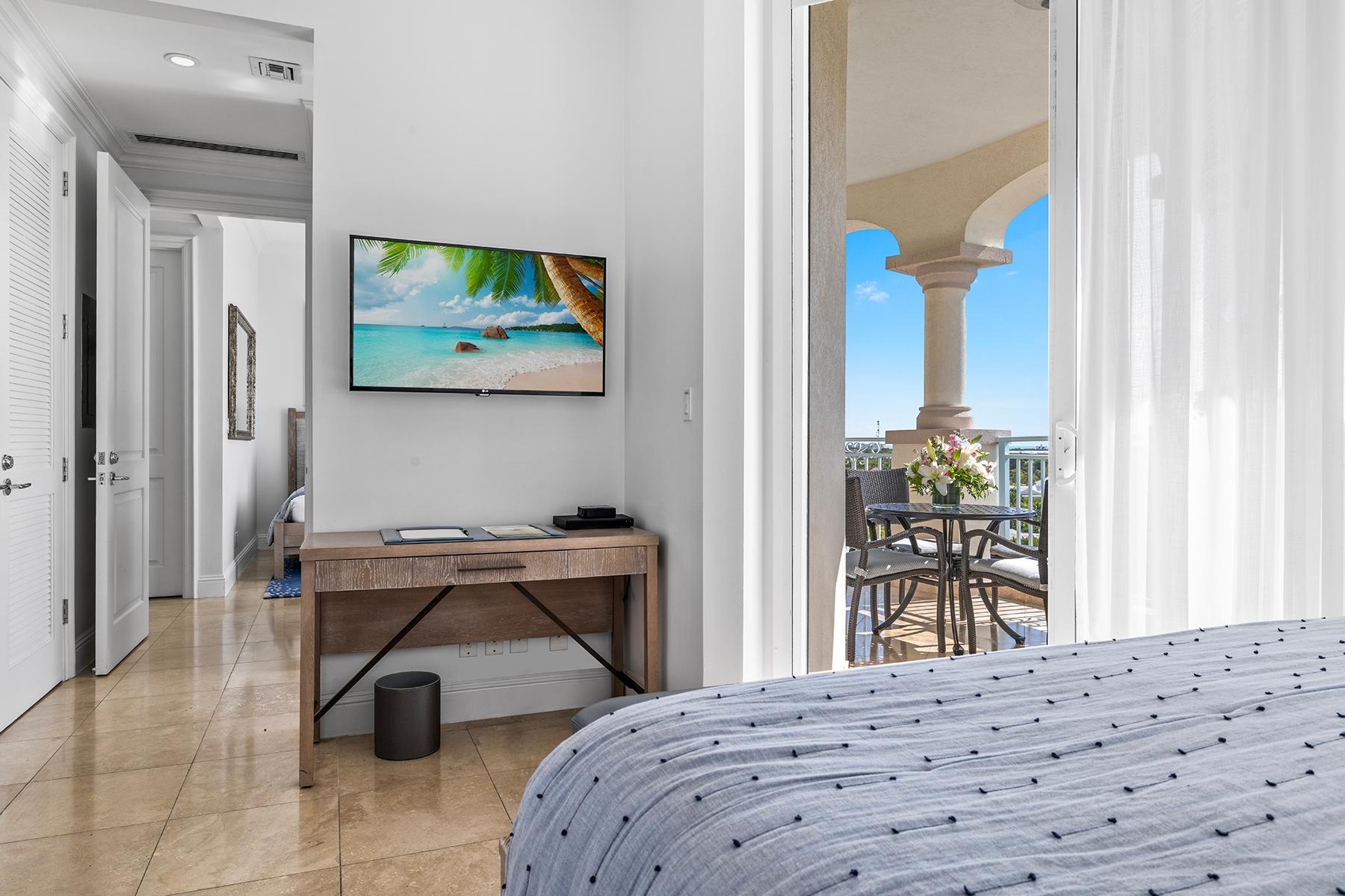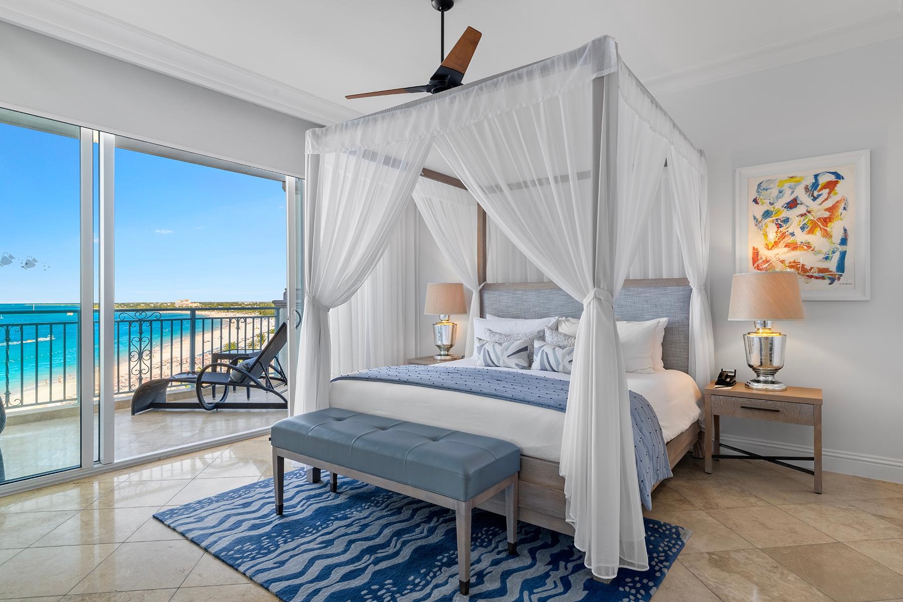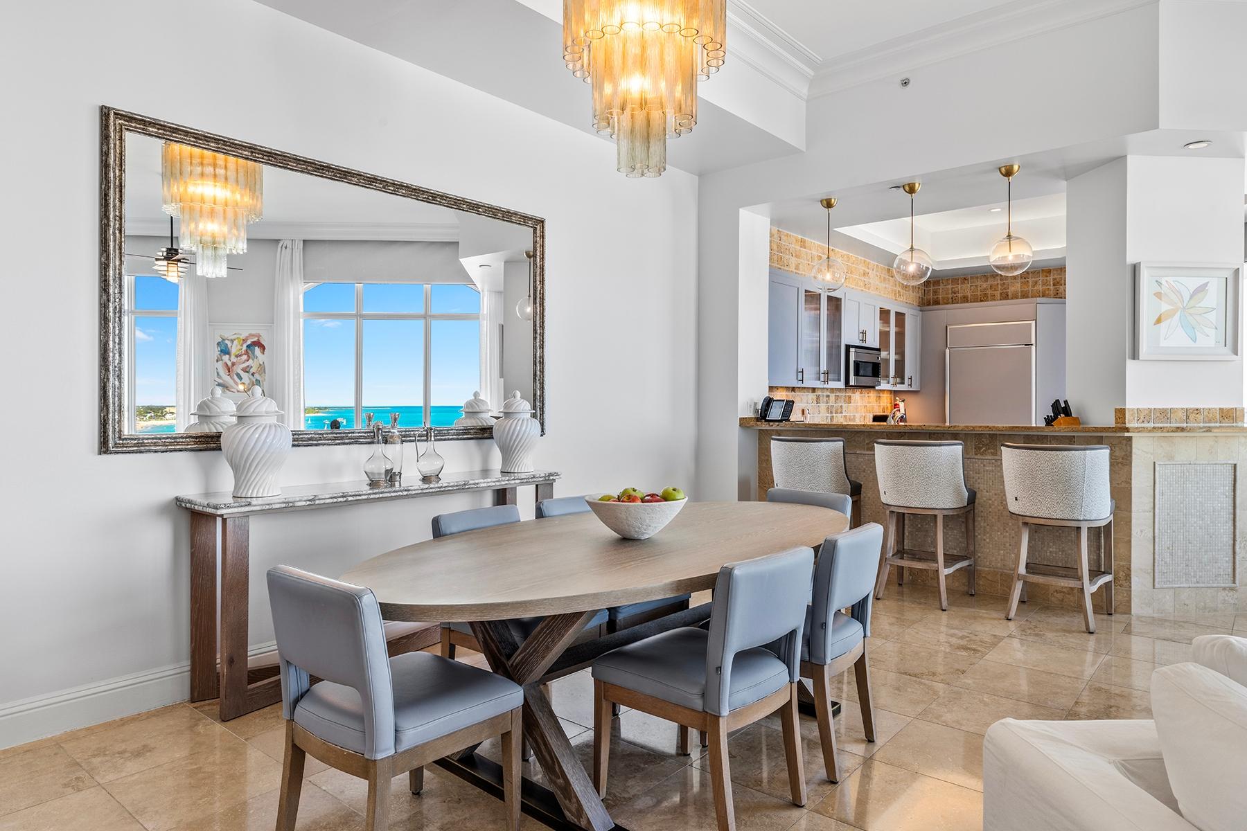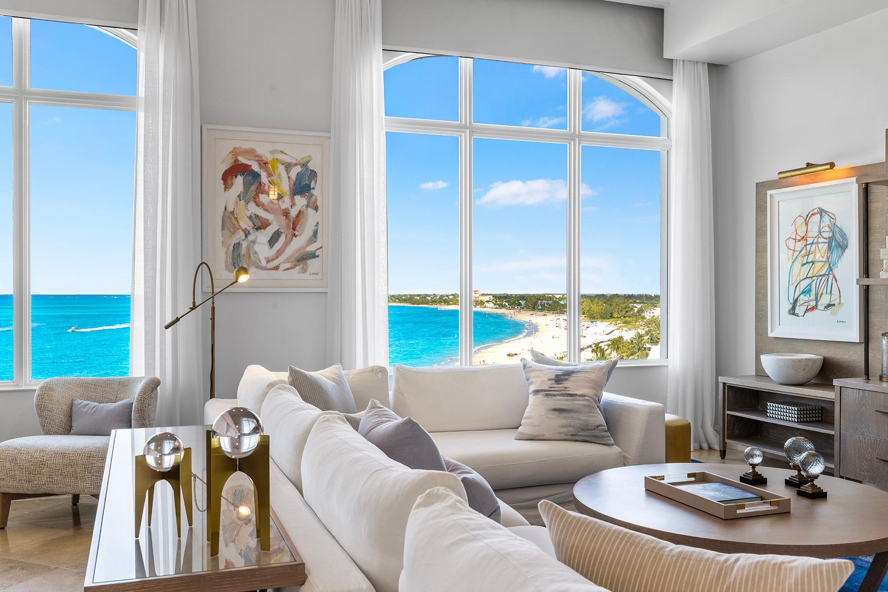 | Description | a generous 2,032 SF one-bedroom residence and an adjoining 794 SF two-bedroom suite, each with independent access and distinct appeal. The primary residence features an expansive oceanfront master suite with sweeping views across Grace Bay toward Leeward Point and the outer cays. High ceilings and floor-to-ceiling glass capture the remarkable 180-degree perspective that distinguishes this top-floor position. The secondary two-bedroom suite, equipped with its own kitchenette and en-suite bathrooms in both bedrooms, functions seamlessly as guest quarters, rental income generator, or standalone investment. Includes deeded underground parking space and storage. |