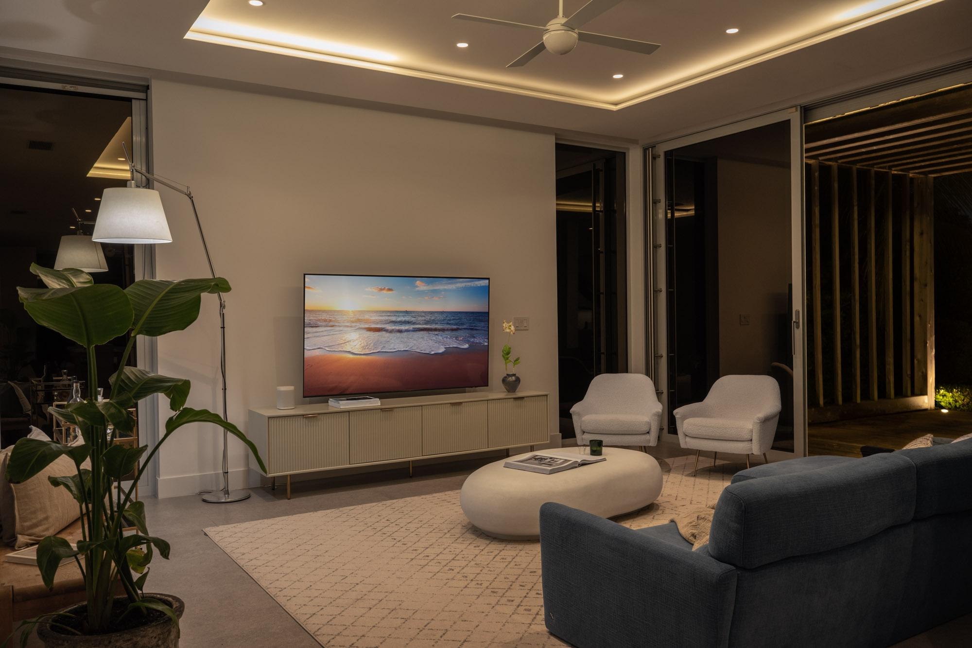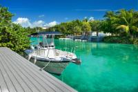 | Description | Located in the exclusive Blue Cay Estate—Leeward's premier gated waterfront community by Windward Developments (Peninsula Estates, South Bank, Arc)—this residence offers direct gateway access to the cays for world-class boating and water sports, with proximity to Grace Bay's restaurants and shopping, Royal Turks & Caicos Golf Course, International School, and Blue Haven Marina. Designed by Blee Halligan, this custom five-bedroom compound features a four-bedroom main residence and large one-bedroom guest house atop a two-car garage and workshop, spanning an exceptional 0.81-acre perimeter lot with 125 feet of canal frontage. Lush landscaping and electronic gating ensure complete privacy, while the unique lot configuration accommodates a future deck or pavilion with unobstructed views toward the Leeward Channel. The five-bedroom residence totals nearly 7,135 square feet with approximately 4,853 covered square feet. Floor-to-ceiling windows unite indoor-outdoor living while maximizing natural light and water views. A signature skylight transforms the original courtyard design into an enclosed lounge flowing seamlessly into open-concept living areas and island kitchen with expansive window bench. The primary suite spans the entire upper level with large balcony, generous dressing area, dual-shower bathroom, and expansive walk-in closet, while three ground-level ensuite bedrooms and a large walk-in pantry complete the main residence. The 40-foot pool anchors outdoor entertaining, complemented by a covered dining area with electric screens and BBQ station. An entertainment deck with pergola, framed by established trees and fragrant Frangipanis, layers down through open deck and green space to the 40-foot boat dock offering direct channel access. Additional amenities include outdoor staff facilities and bathroom, backup generator, mosquito misting system, and electronic window treatments. The main house is offered lightly furnished; the new guest house is unfurnished. |
